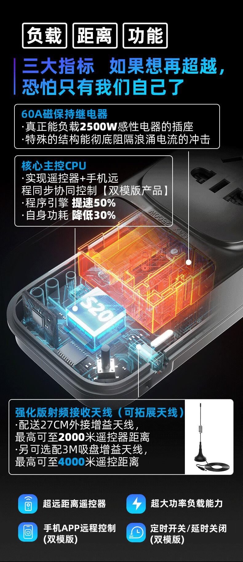220v single-channel water pump remote control home remote intelligent wireless switch high-power remote control socket 1000 meters 60A single remote control