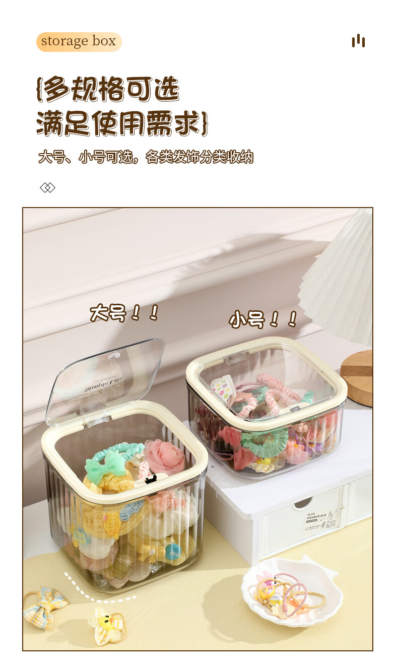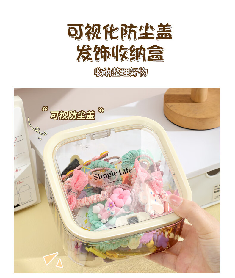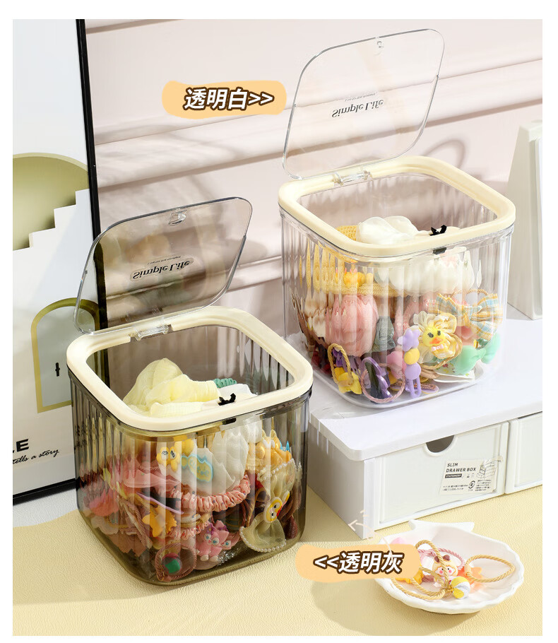 Kindergarten performance hair accessories, hairpins, lidded storage box, hair accessories, hair ties, headbands, jewelry boxes, cute display boxes, dolls, transparent white large size, 1 pack