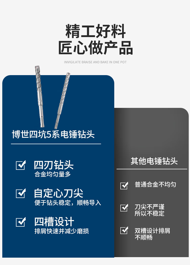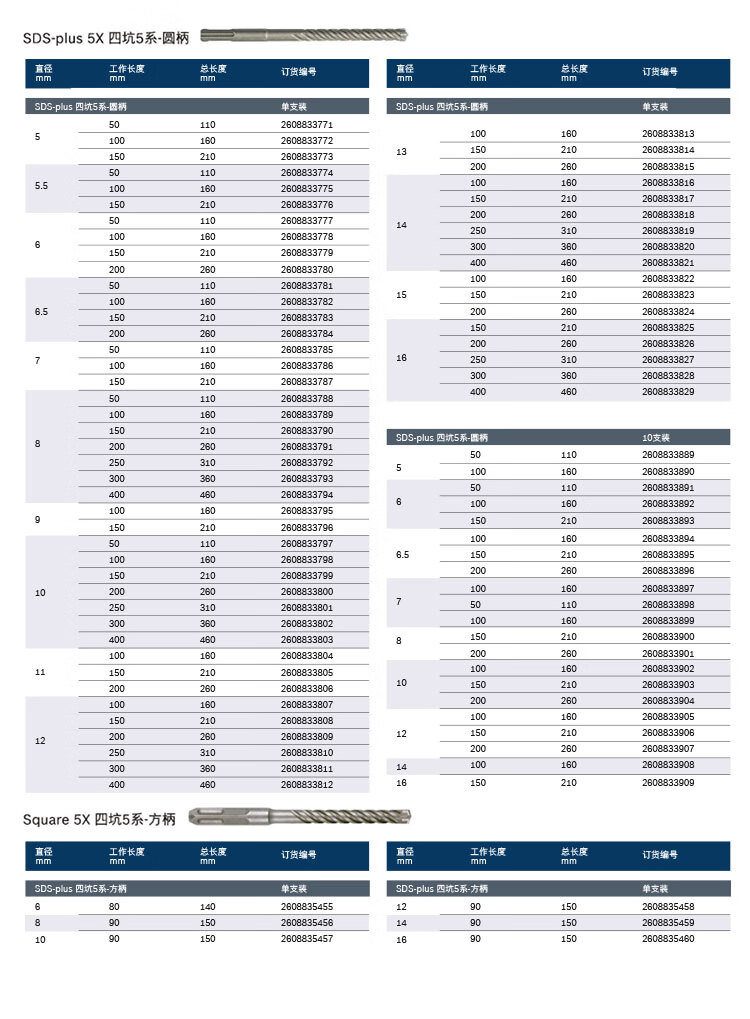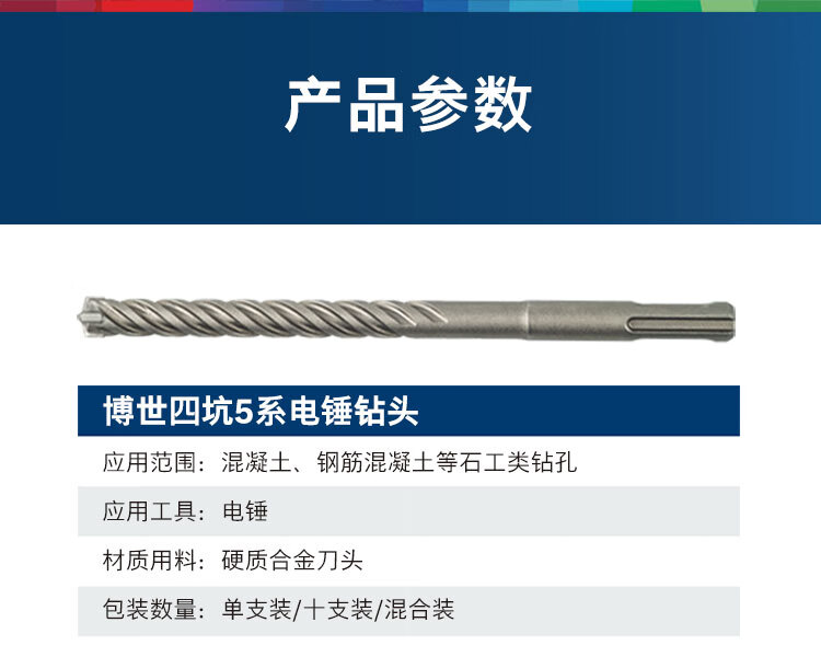 Bosch (BOSCH) electric hammer impact drill bit four pits 5 series round shank two pits cross wall extension for concrete drilling 6x100x160mm four-edged round shank