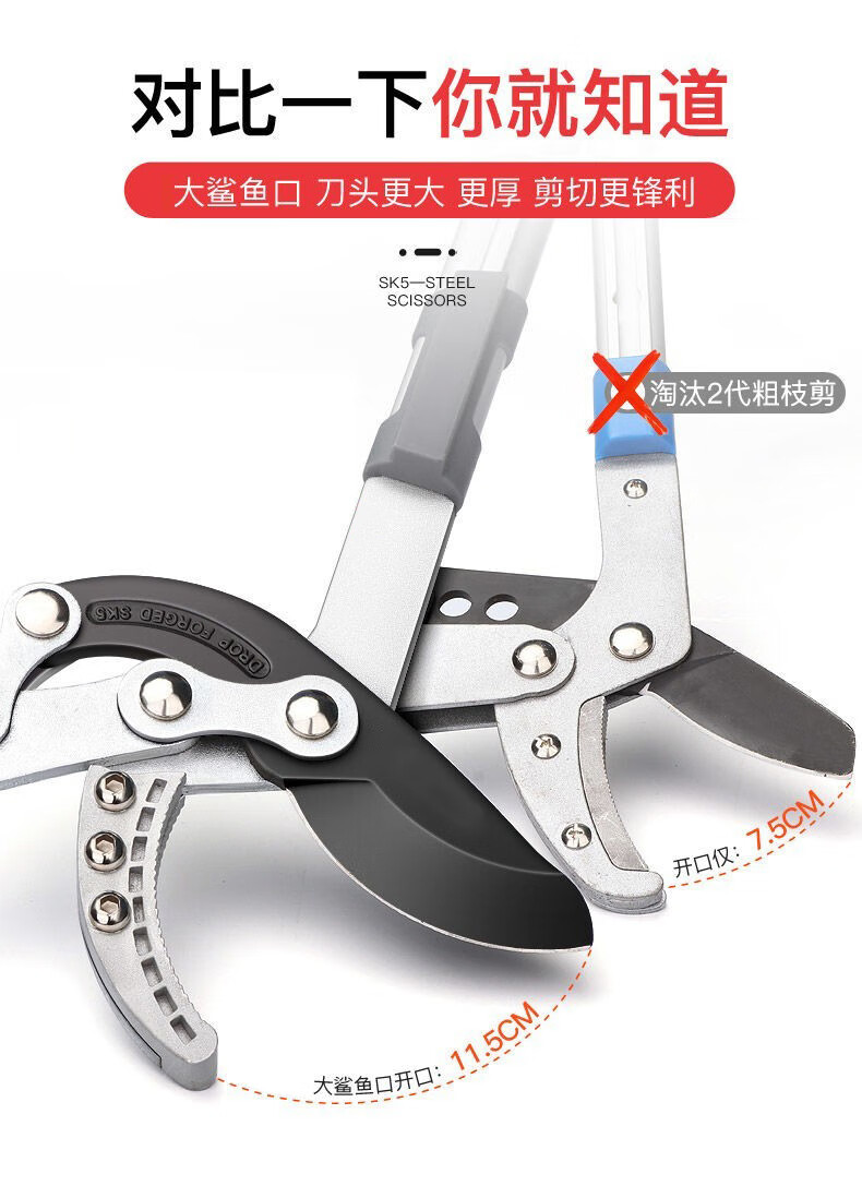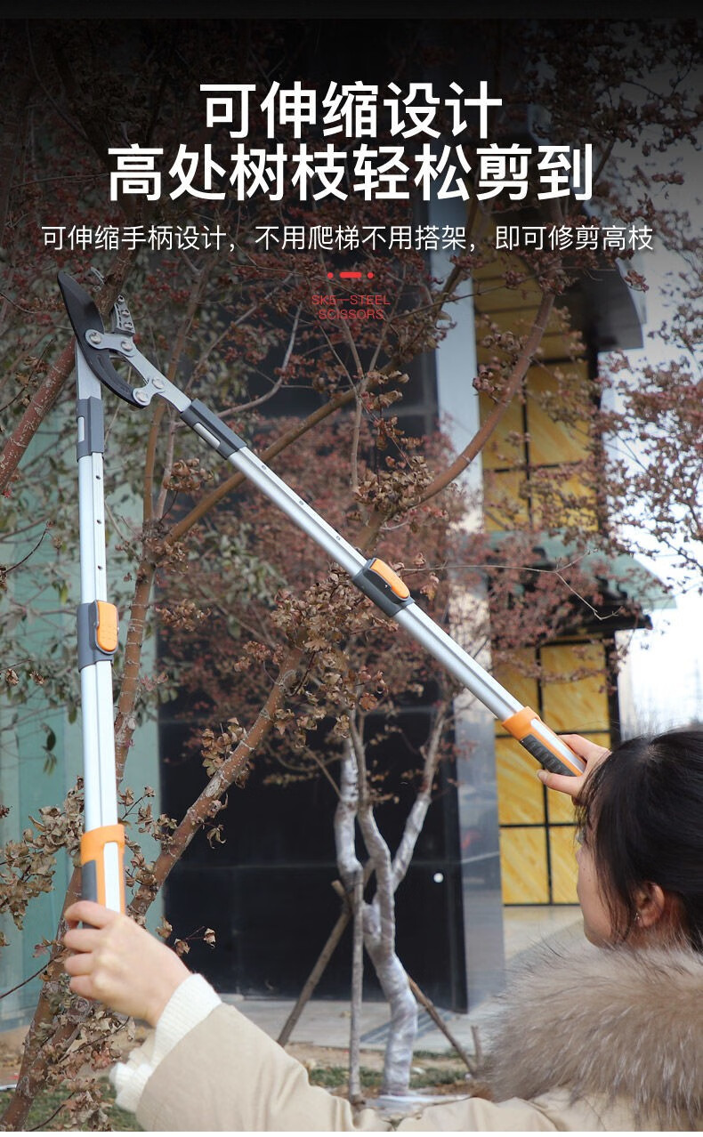 Garden pruning scissors, branch pruning, gardening special fruit tree pruning thick branch shears, powerful shears, heavy-duty reinforced telescopic shears 70mm + blade