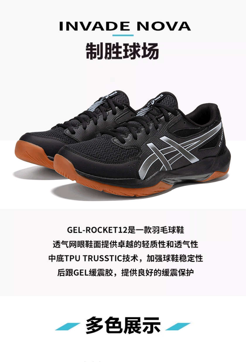 ASICS Badminton Shoes Men's New Breathable Cushioning Lightweight Professional Sports Shoes GEL-ROCKET 12 White/Black-101 42.5