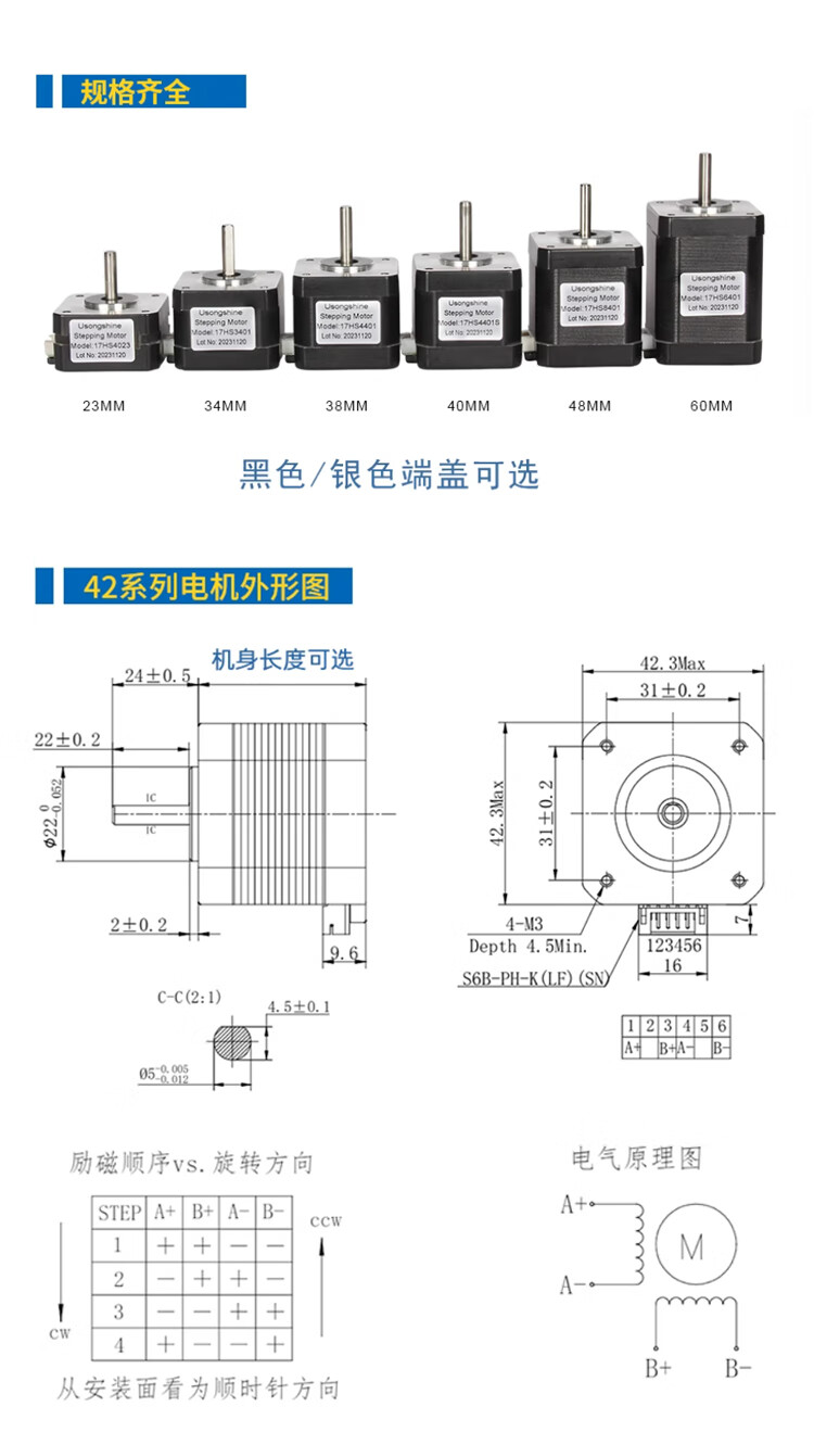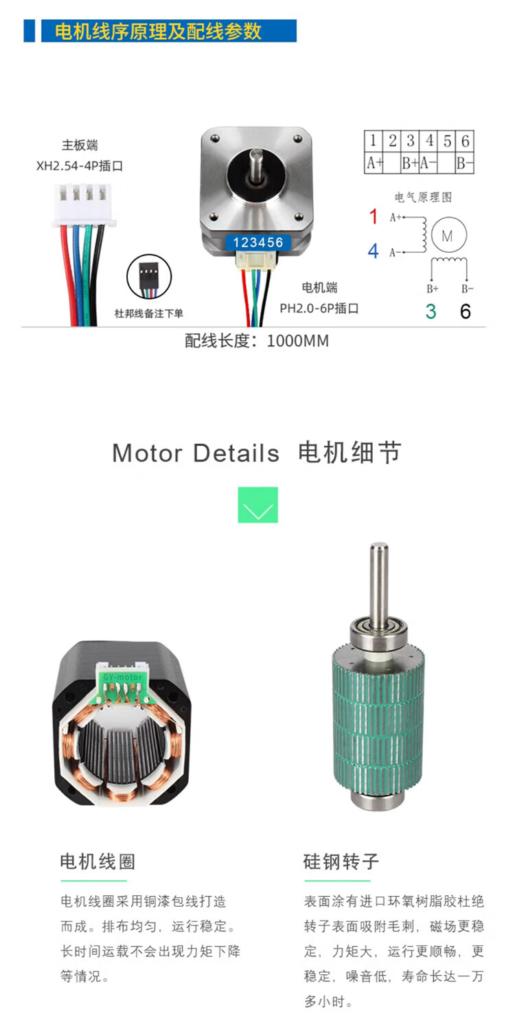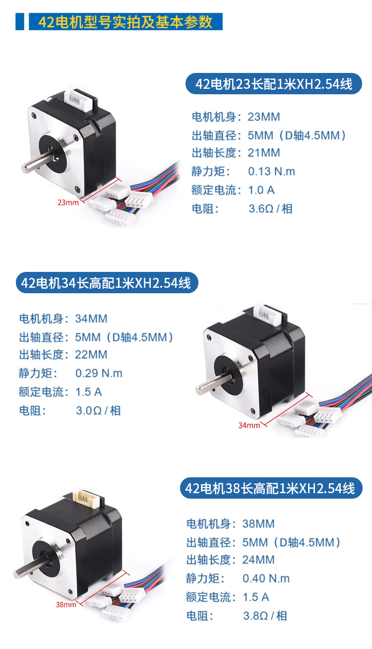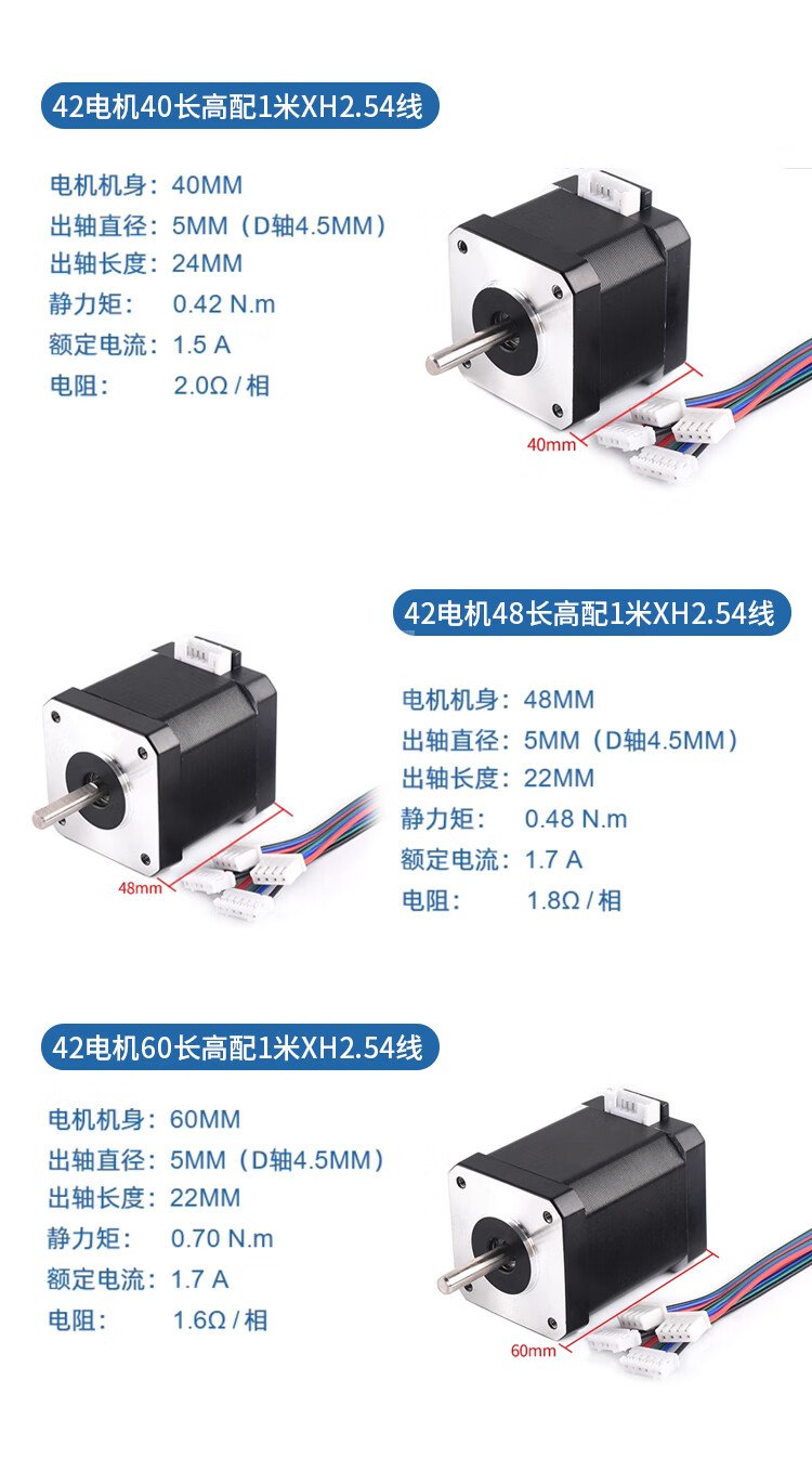 42/57 stepper motor 17nema3401 micro motor writing machine 4401 engraving machine 3d printer 42 motor 23 long with 1 meter XH2.54 line No Specifications