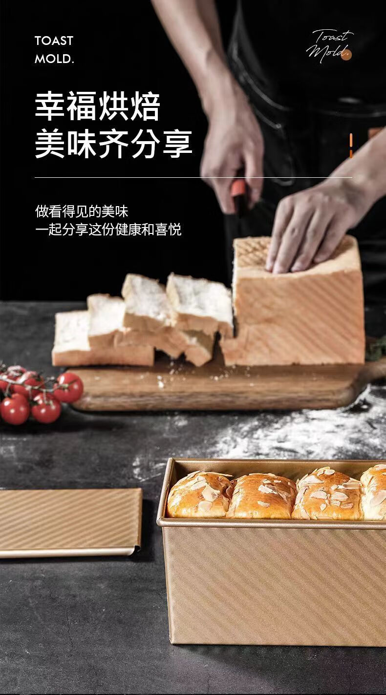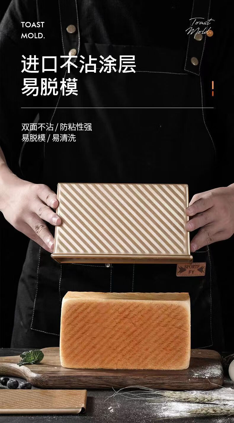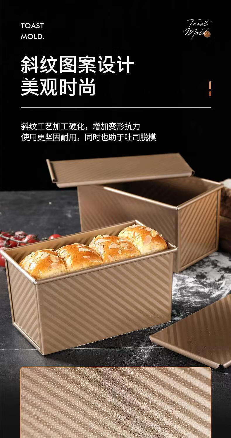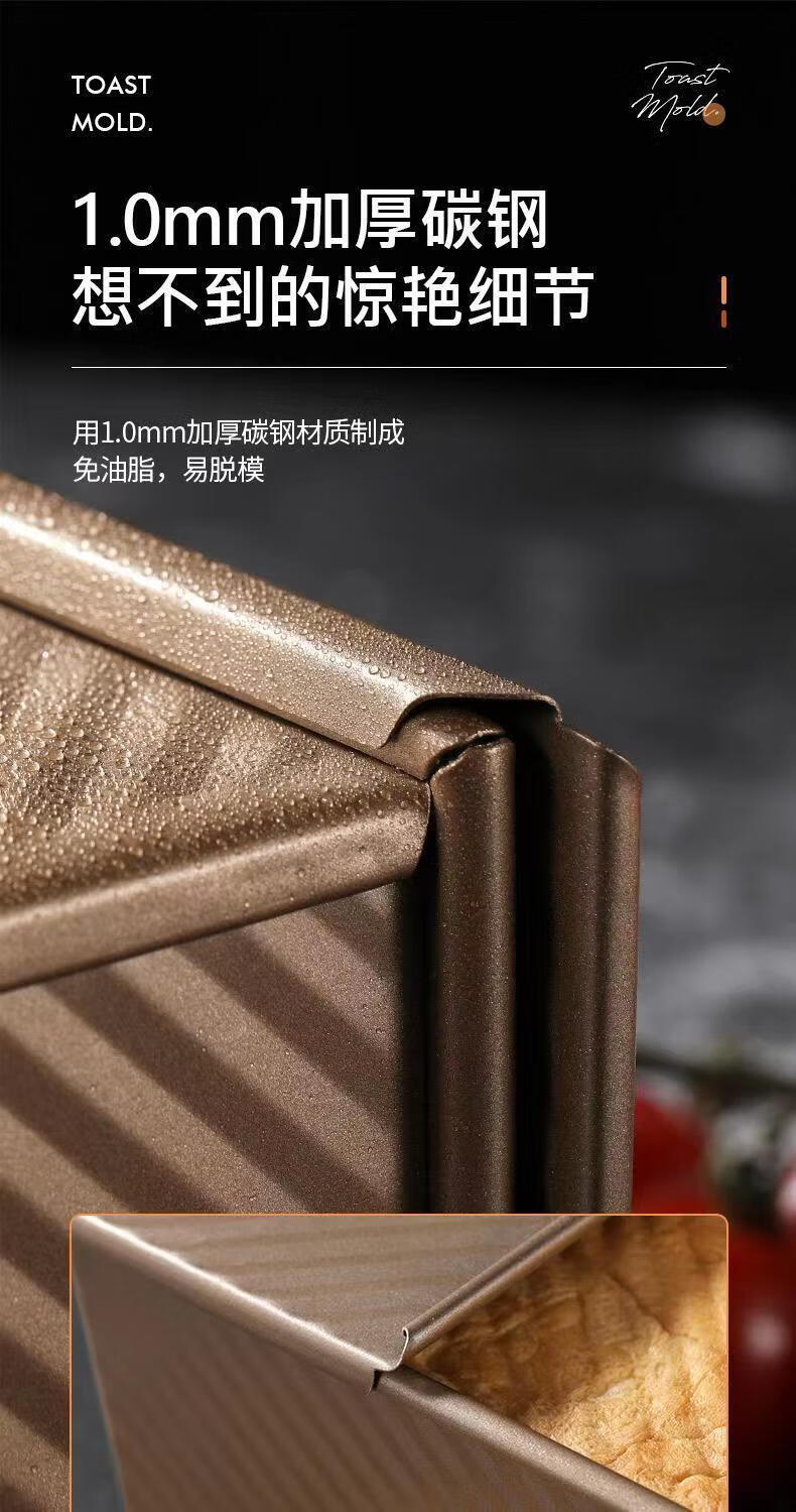Ye Yu corrugated toast mold square box cake baking tool lid household air fryer oven toast bread carbon steel (single mold) 450g corrugated lid 21*12