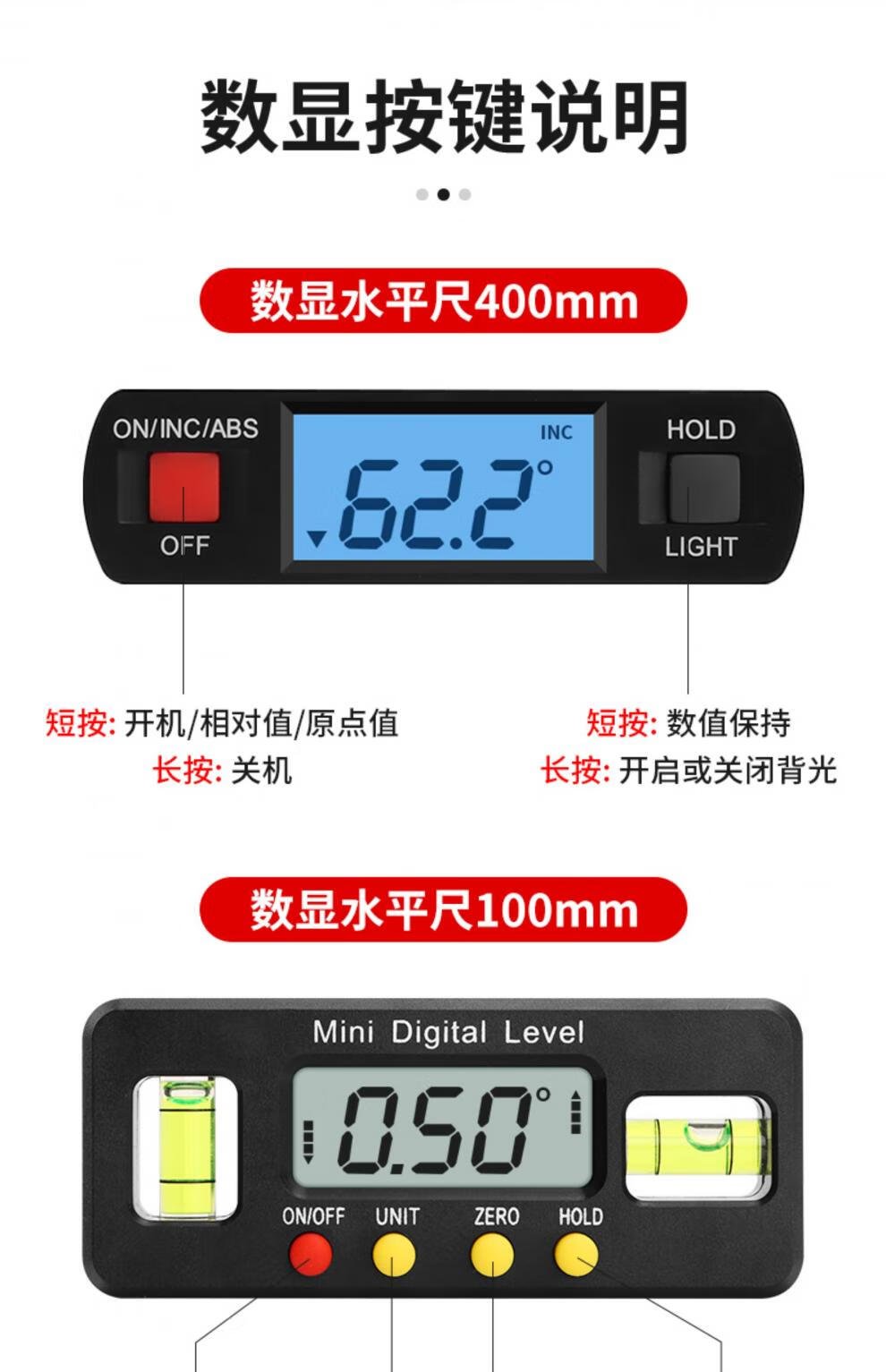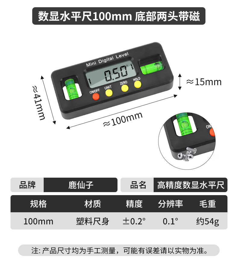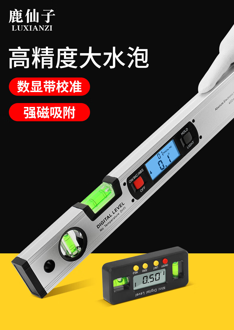 Lu Xianzi high-precision electronic digital display level with magnetic mini electrician multi-function portable aluminum alloy level mini digital display high-precision level 100m