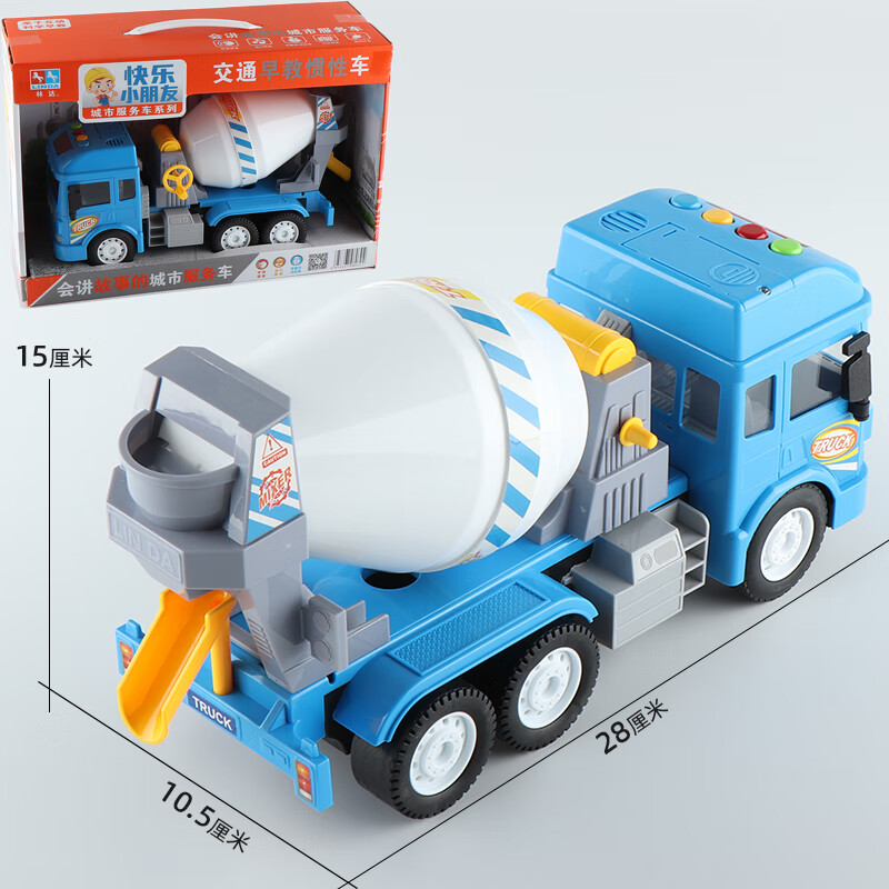 Mixer truck large Linda music sound and light cement pump truck tank truck engineering vehicle model children's boy toy car music climbing car (with battery + minifigure)