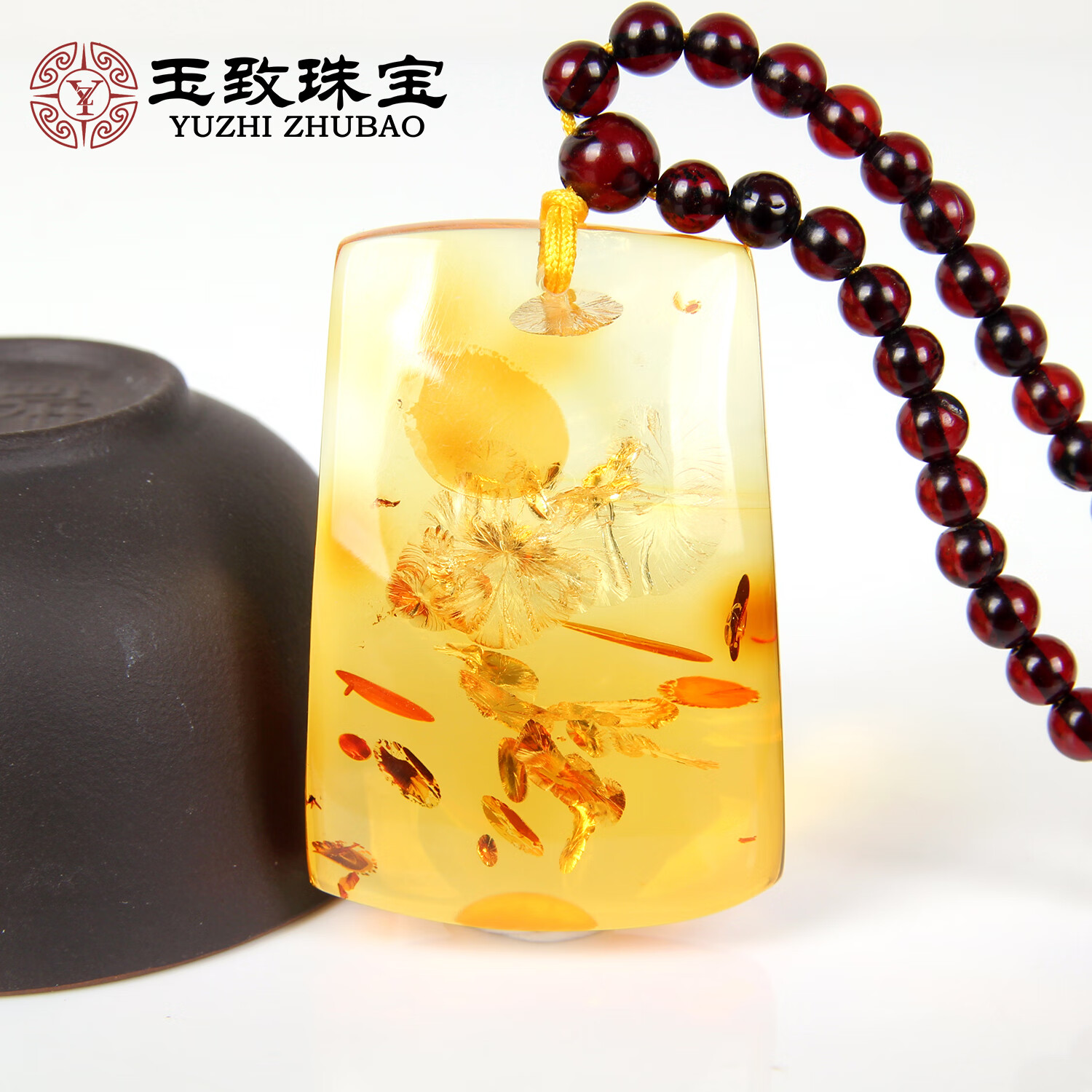 Yuzhi 1 object 1 certificate 1 shot natural flower amber Ping An Wu Shi brand pendant amber pendant collection of orphans 7.97 grams G511 collection of orphans 38.6*26*11 mm