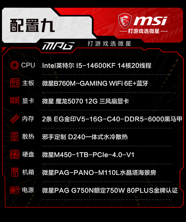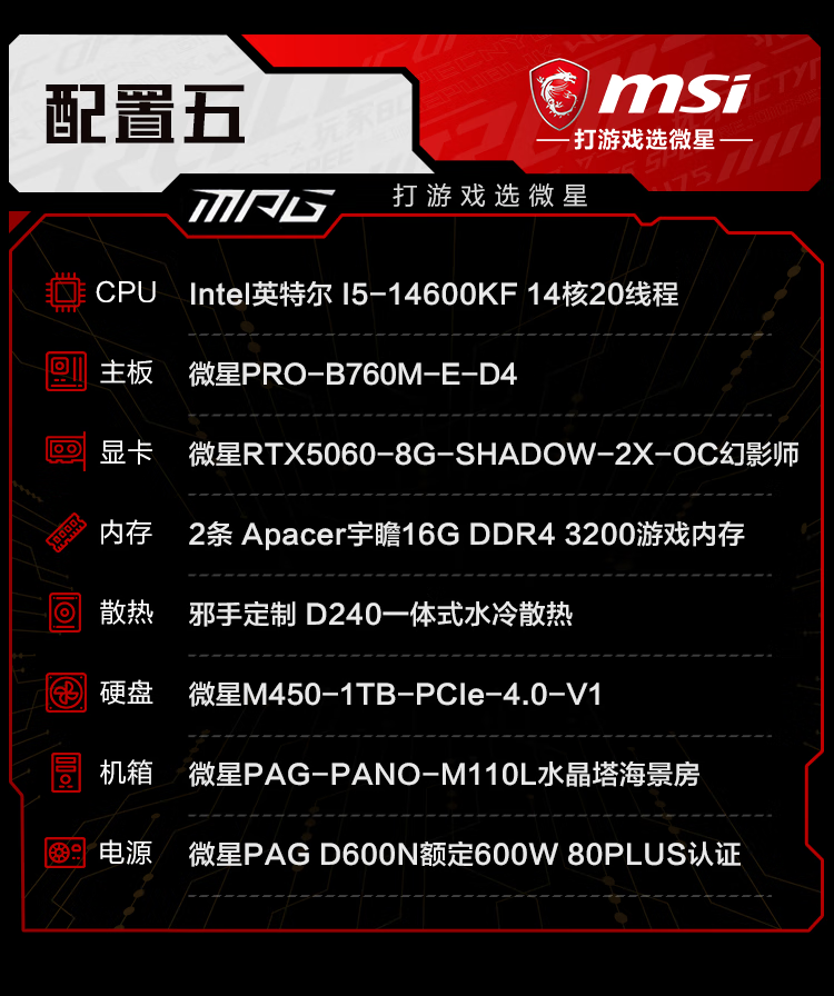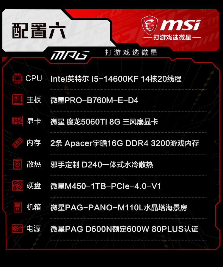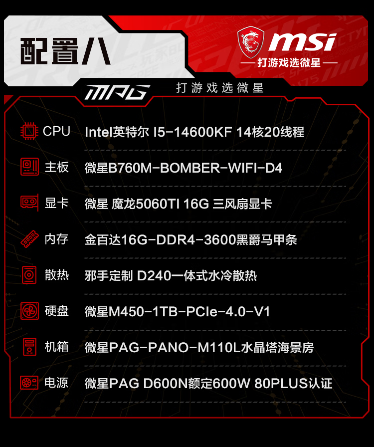 MSI i5 13400F/14600KF/5060TI/5070 assembly computer e-sports host AI designer desktop game host DIY assembly machine 12400F+3050丨一