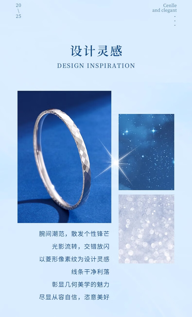 Lao Fengxiang PT950 platinum diamond ring bracelet for women, pure platinum jewelry, Mid-Autumn Festival birthday gift for girlfriend and wife, diamond ring bracelet, 52 rings, about 11.1g