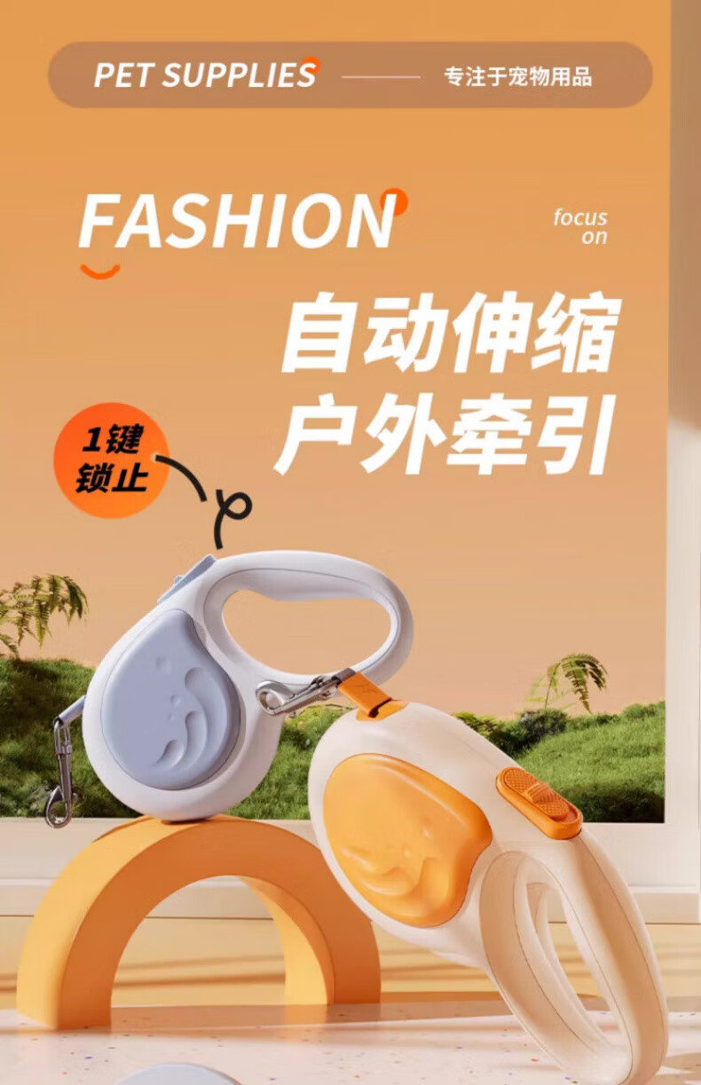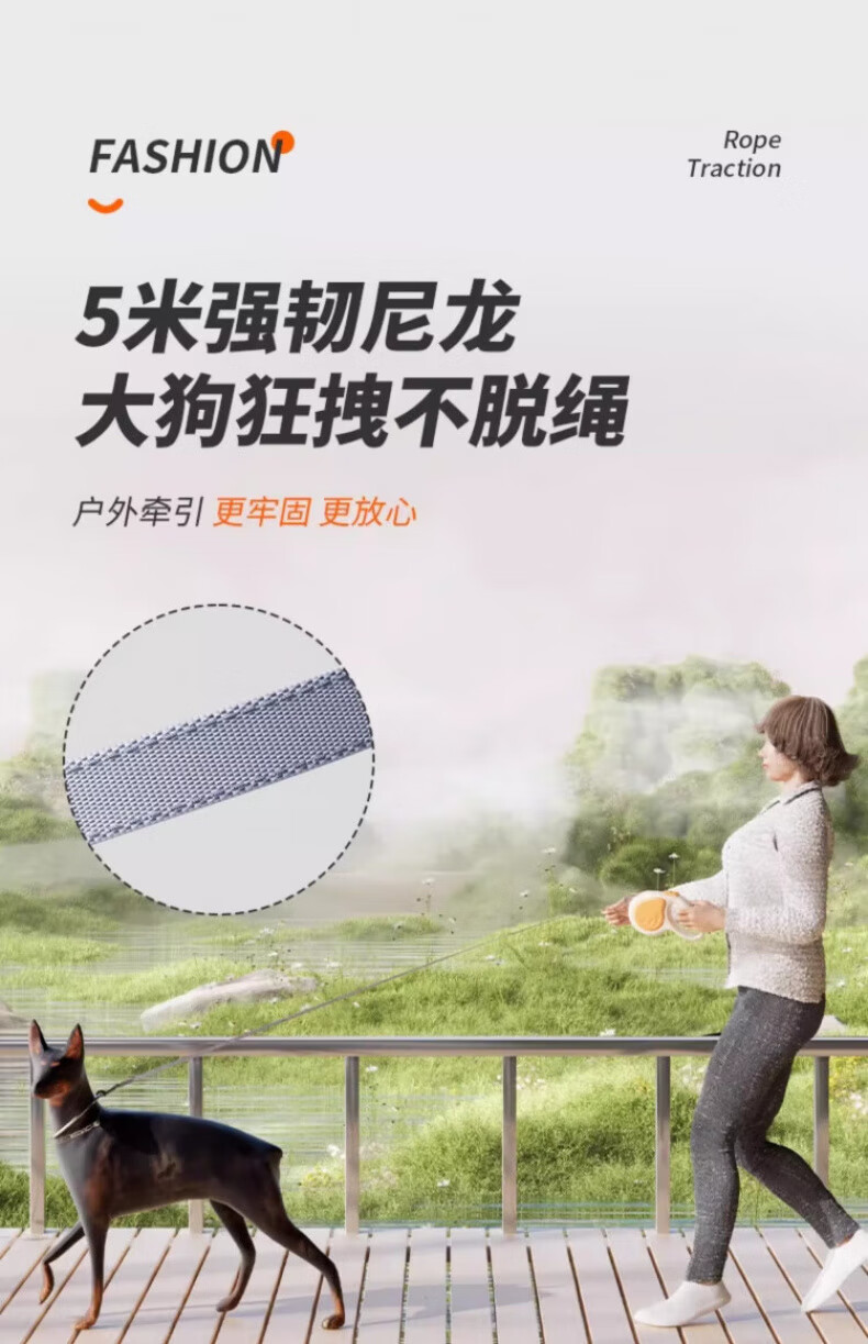 Beichuzhong dog leash, automatic leash, dog leash, large, medium and small dog leash, retractable dog leash, orange 5M automatic retractable leash, comfortable feel, flexible braking