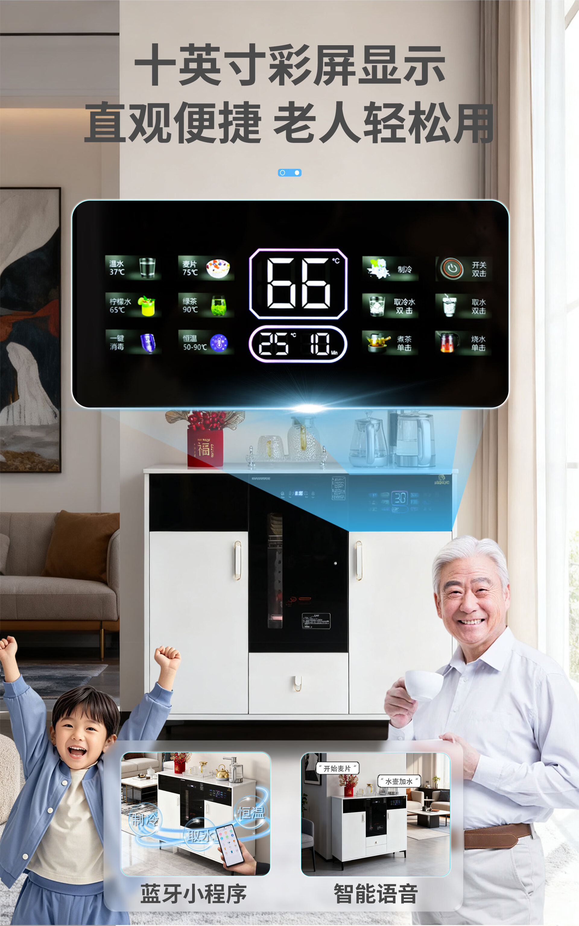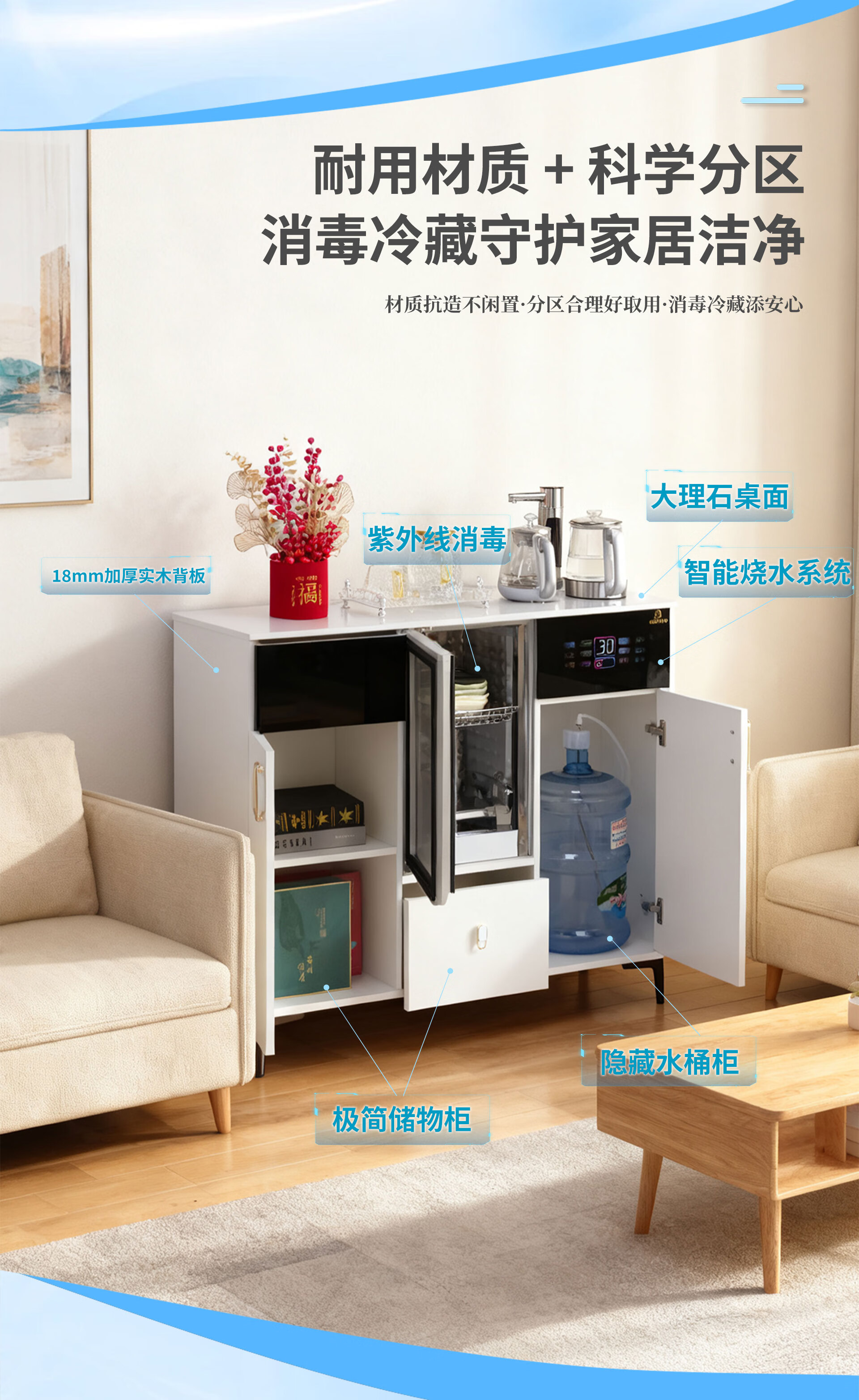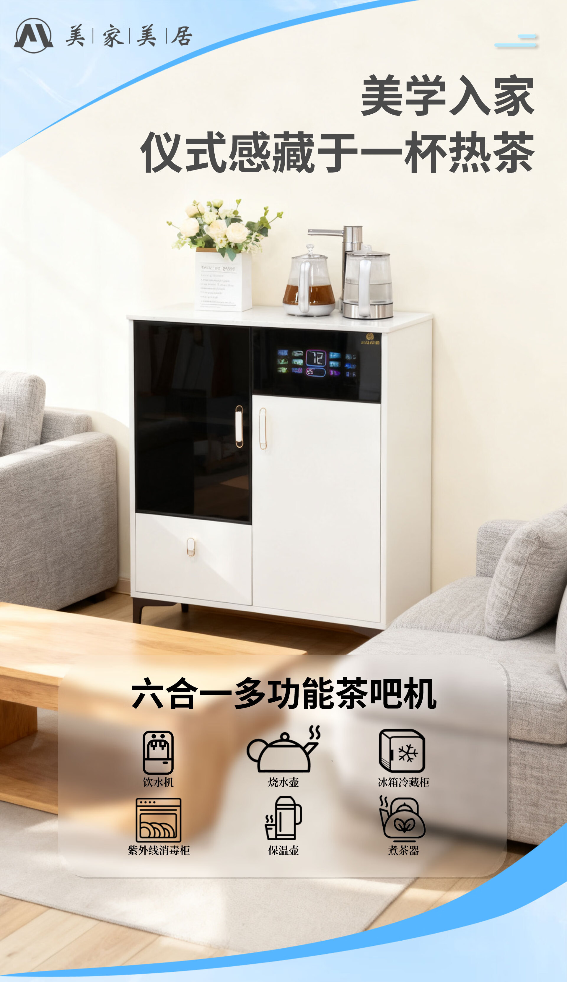 Meijia Meiju tea bar machine solid wood tea bar machine for home high-end living room 2026 new water dispenser office cream style fully automatic all-in-one cabinet disinfection sideboard cooling hot refrigeration double cabinet milk white refrigerated model (can be as low as about 5) cooling and heating type