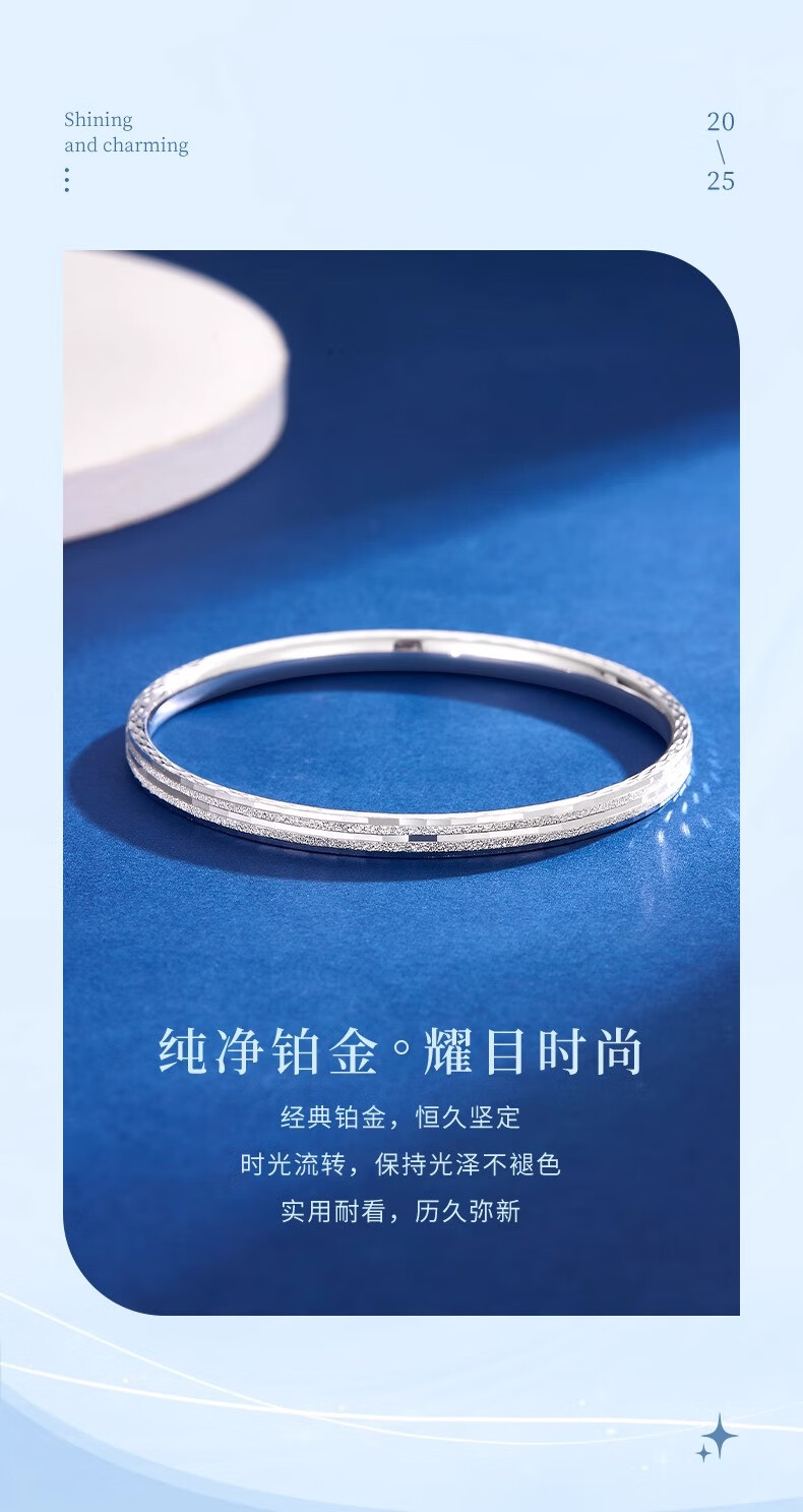 Lao Fengxiang PT950 platinum baby's breath bracelet for women, pure platinum hand, wife's birthday gift, Mid-Autumn Festival gift for girlfriend, baby's breath bracelet, 54 rings, about 13.6g