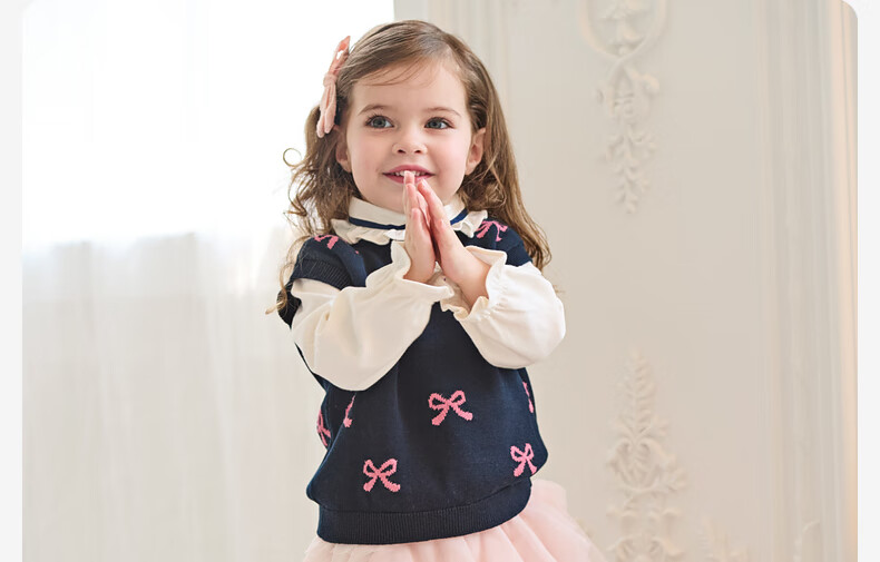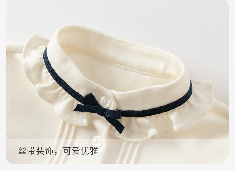 DAVE&BELLA spring new style girls' long-sleeved shirts, baby girl's shirts, children's cotton tops, casual children's clothes, pearl white, in stock, 90 cm (recommended height 80-90cm)