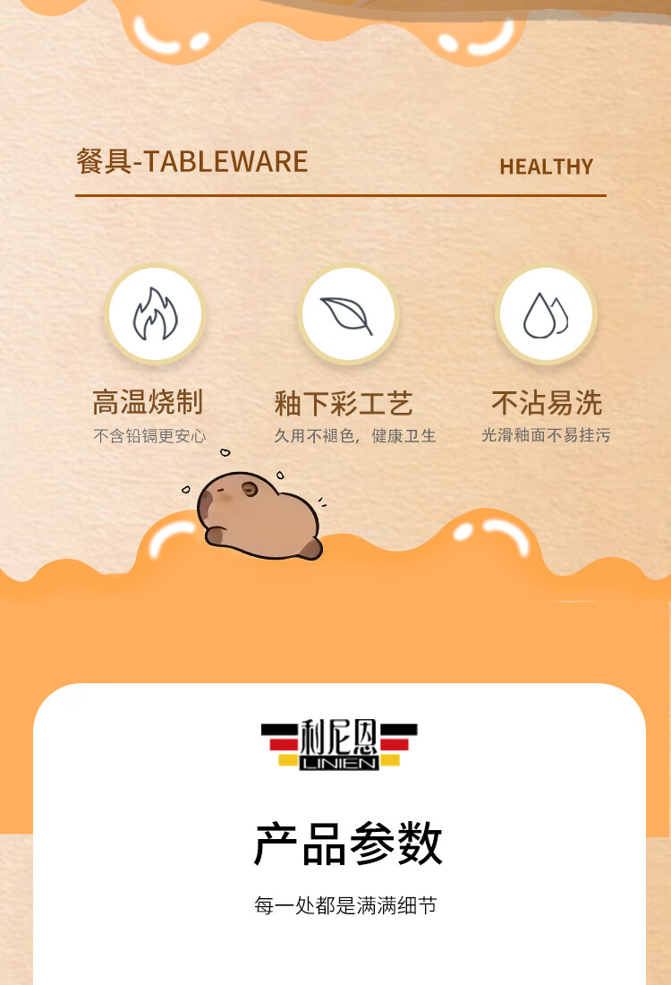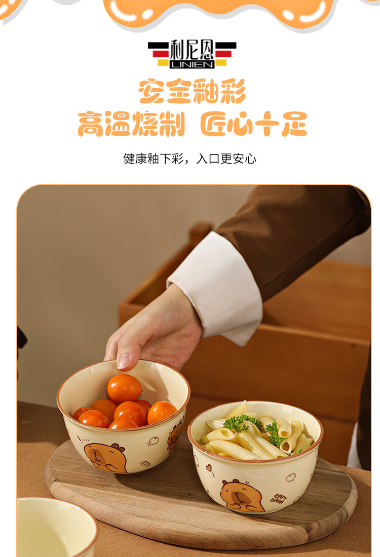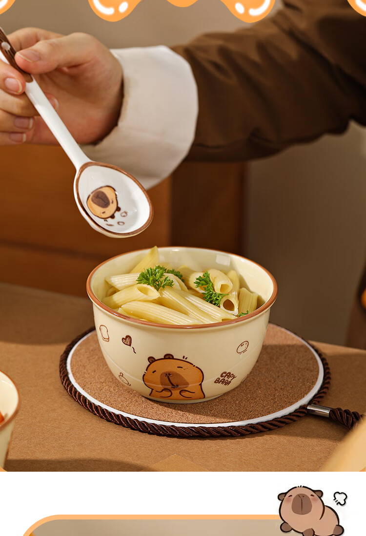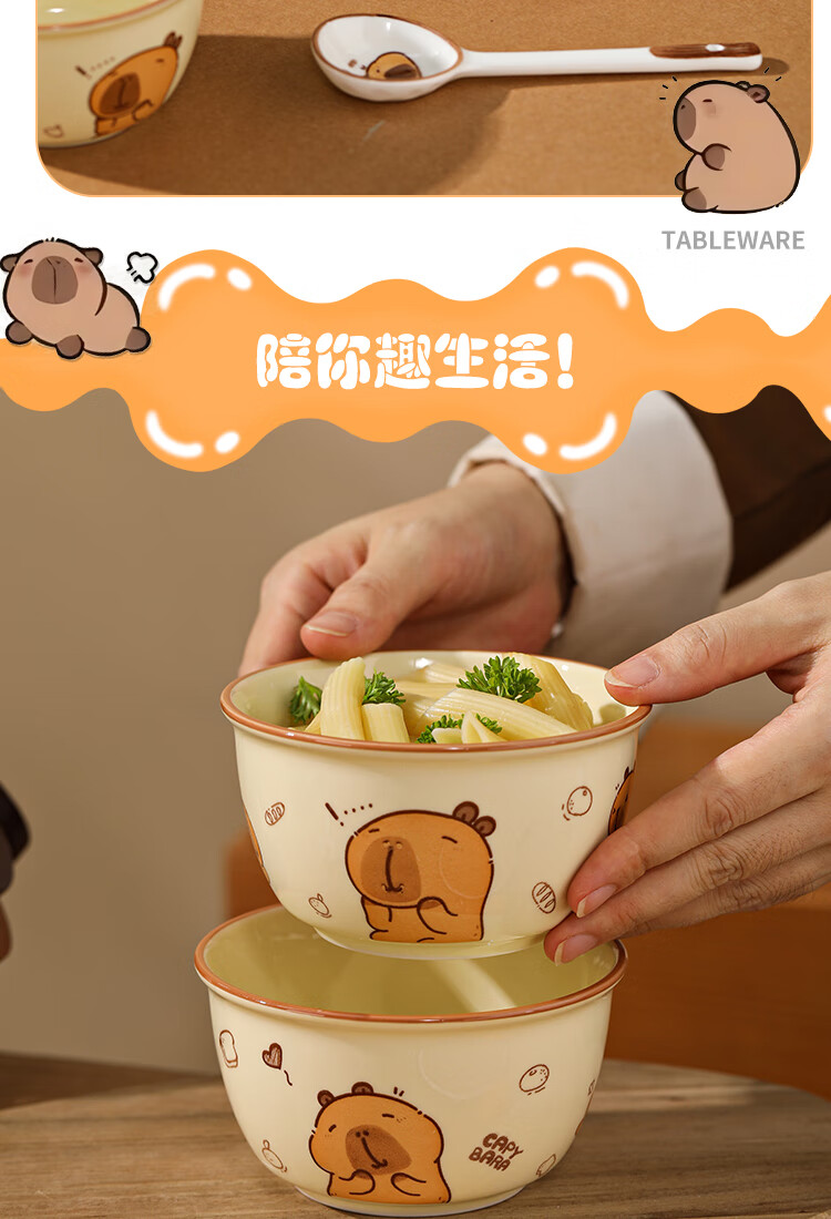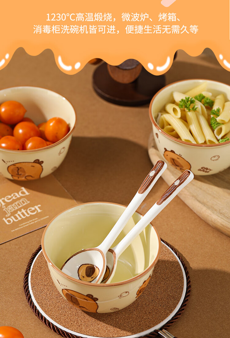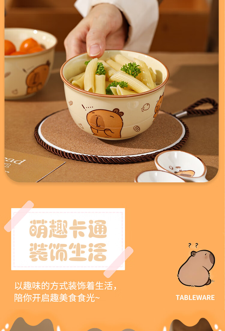 可爱卡皮巴拉斗笠碗4.5英寸饭碗家庭装釉下彩米饭碗精致儿童饭碗 4.5英寸碗【4个装】