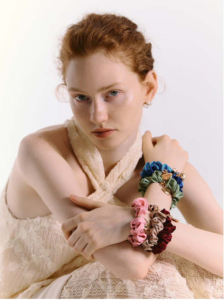She s Akiko hair accessories, heart-shaped hair ring, large intestine ring, flower head rope, ponytail, rubber band, hair rope, headband, birthday gift for women, Mo Yehei G0 (upgraded accessories)