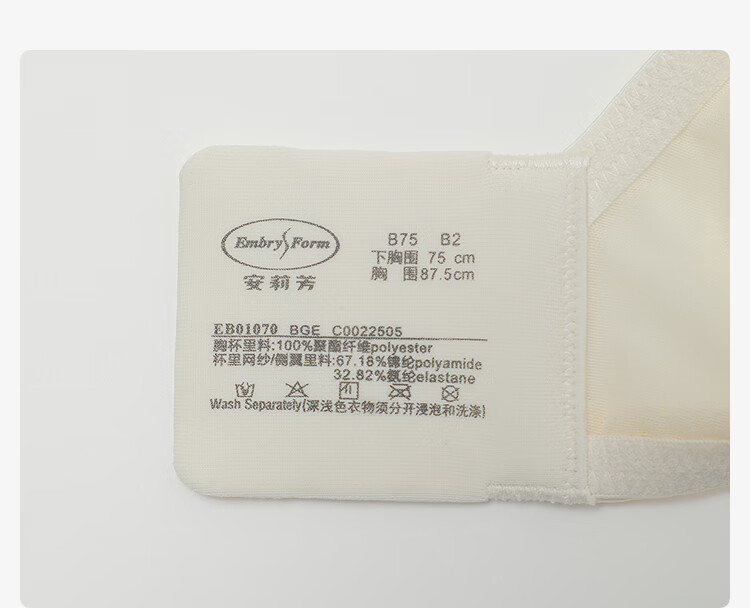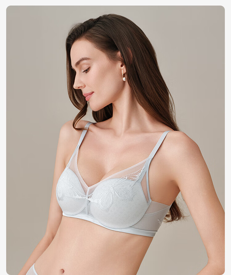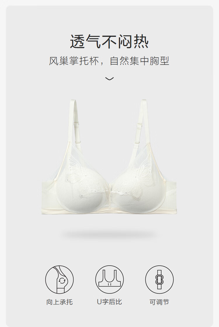 Embry Shopping Mall Same Style Light Luxurious Butterfly Lace Wireless Comfortable Women's Push-Up Bra EB01070 Gift Beige BGE 75B
