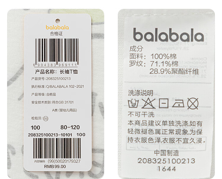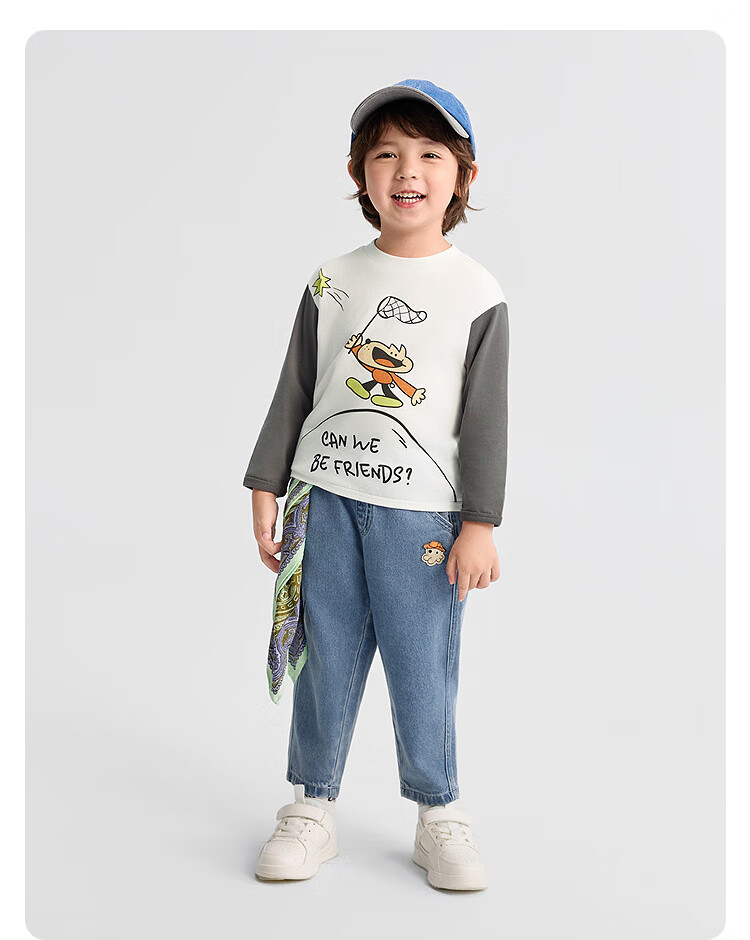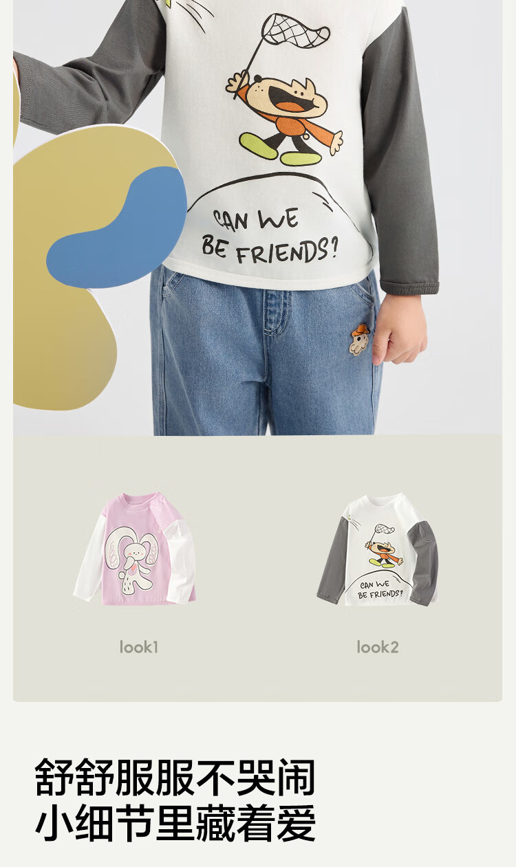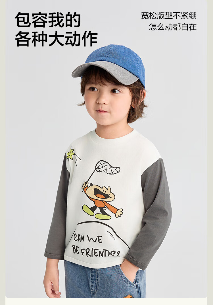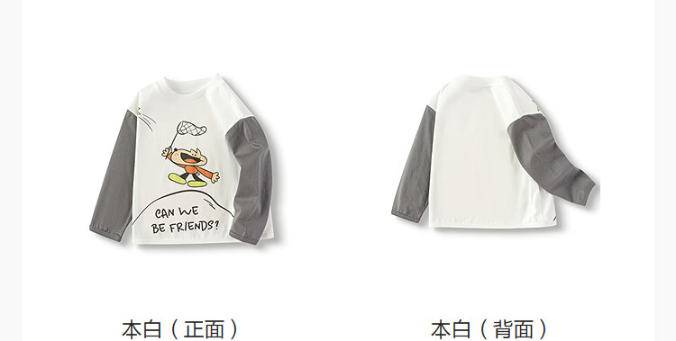 Bala BalaOne children's clothing baby long-sleeved T-shirt pure cotton bottoming shirt boys and girls autumn clothing 2025 new spring and autumn cute white 10101 90