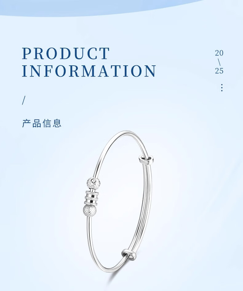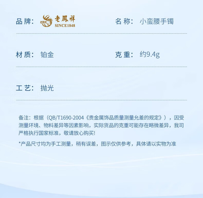 Lao Fengxiang PT950 Platinum Small Waist Bracelet Women's Pure Platinum Hand Accessories Chinese Valentine's Day Birthday Gift for Girlfriend and Wife PT950 Platinum Small Waist Bracelet Approximately 9.4g