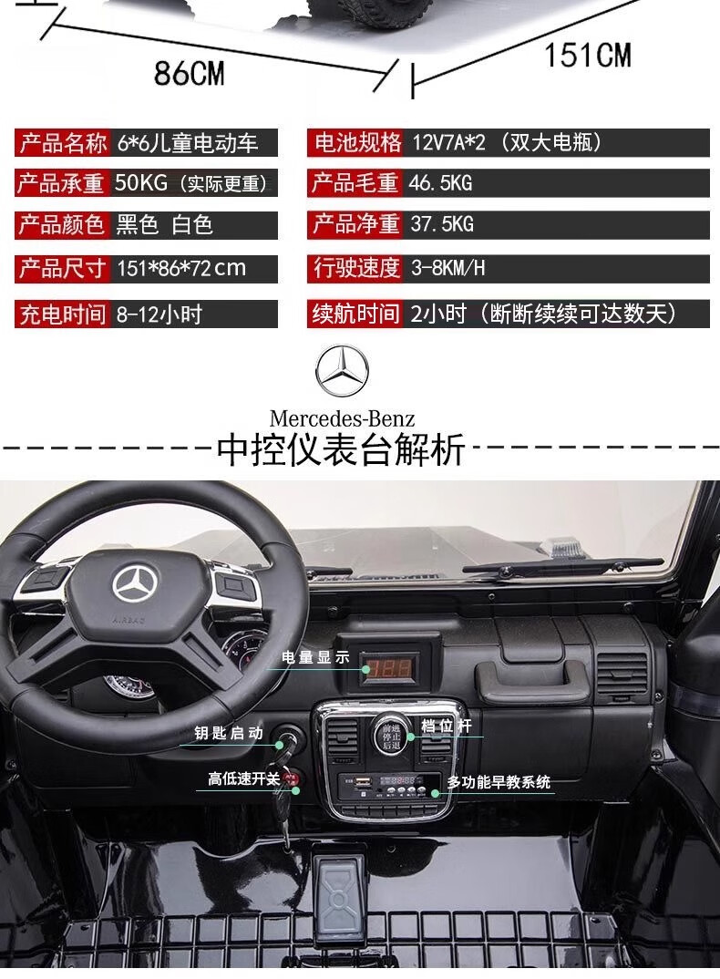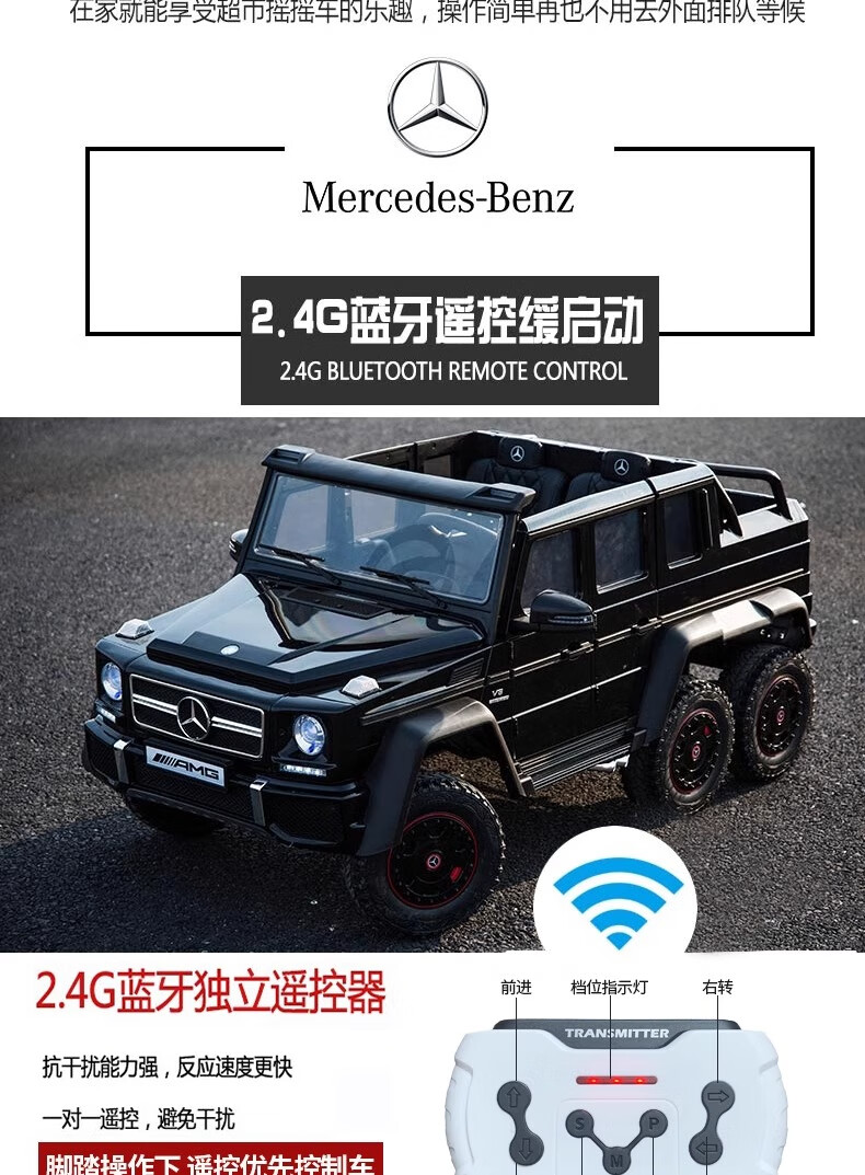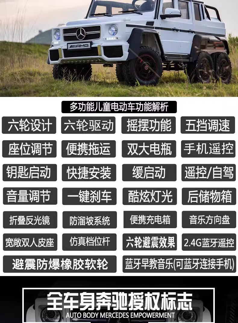 Rovinj children's electric car Mercedes-Benz Big G six-wheel drive remote control off-road toy car super large can sit adults' birthday and New Year's gift top with white six-wheel drive + MP4 screen + dual batteries