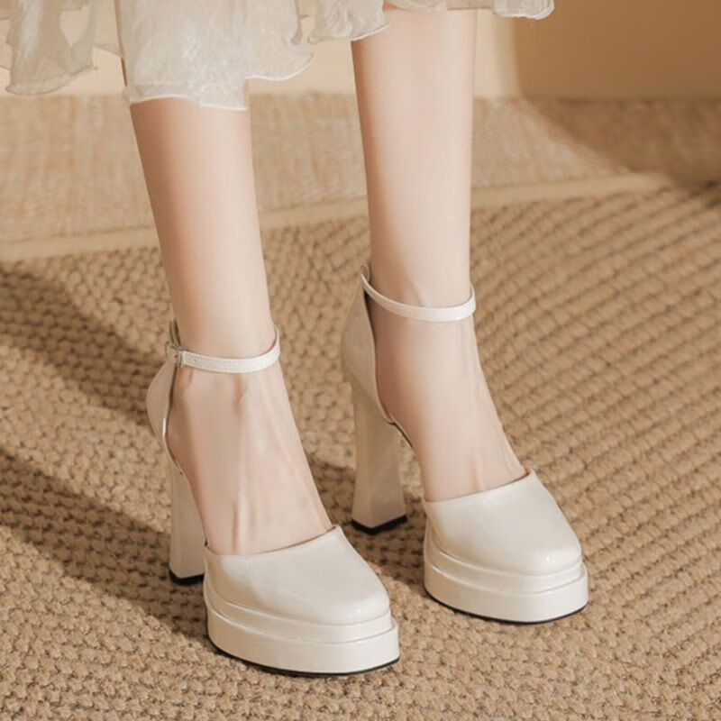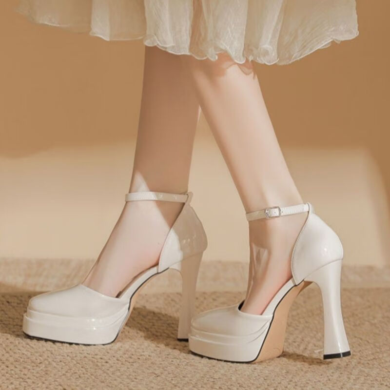 Tianyi new small waterproof platform high-heeled shoes for women thick-soled sexy toe-toe sandals thick-soled French Mary Jane shoes wedding shoes thick-soled high-heeled shoes beige 9cm 38