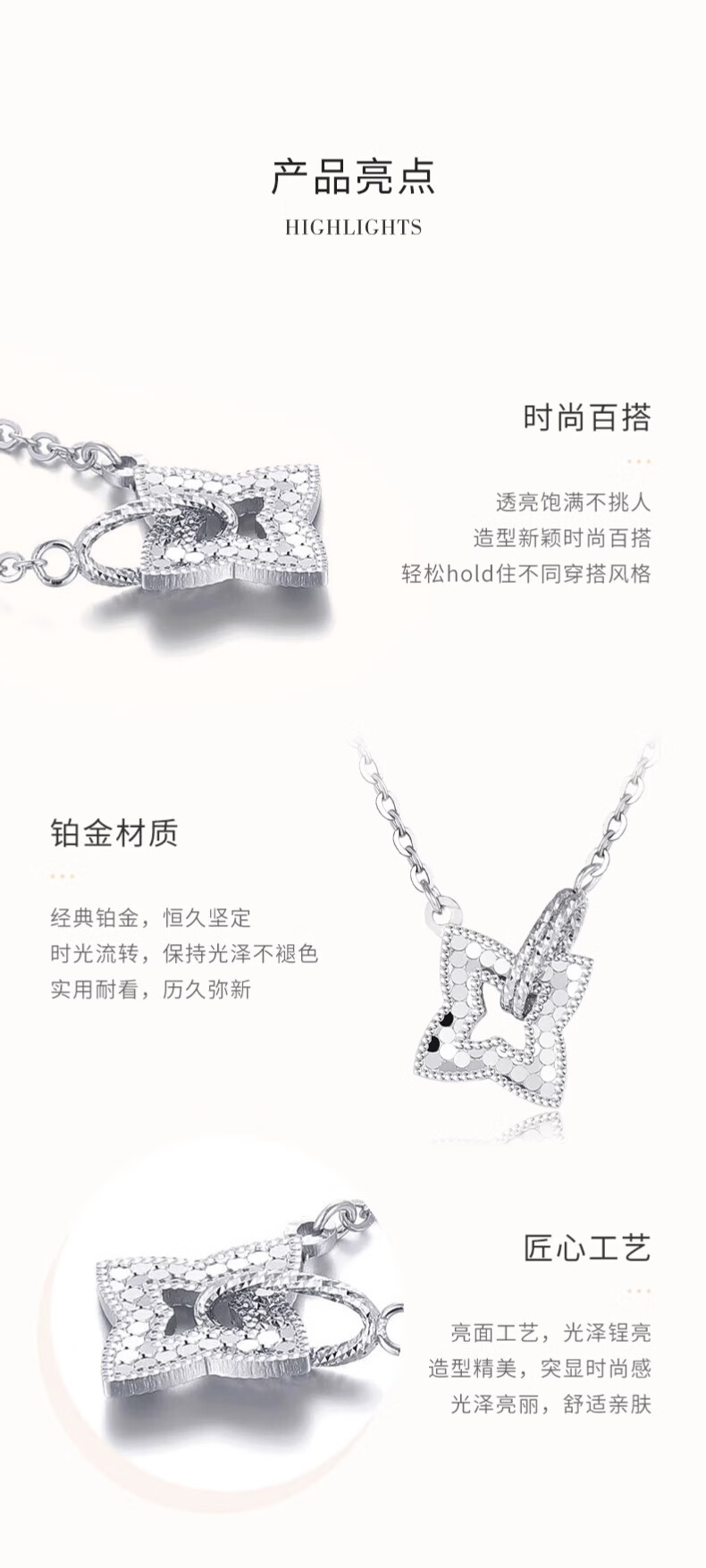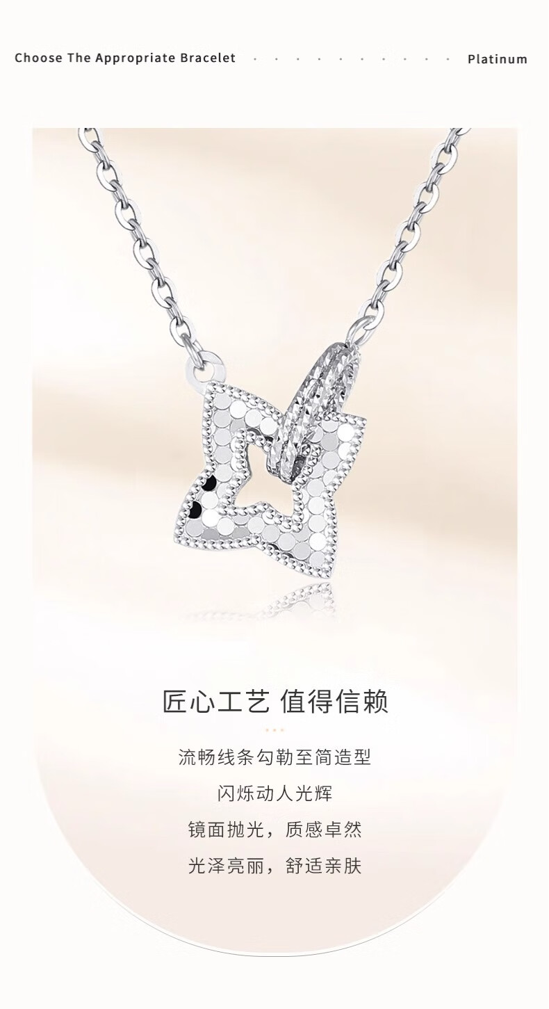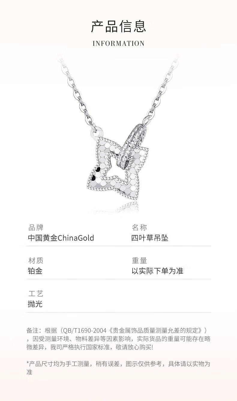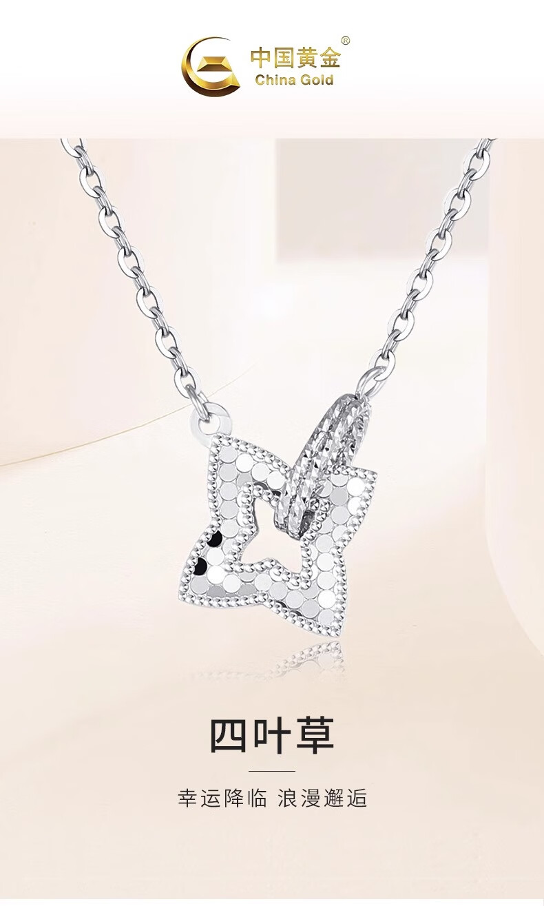 China Gold (CHINA GOLD) PT950 platinum necklace four-leaf clover women's new light luxury niche high-end interlocking pendant birthday gift PT950 platinum interlocking necklace about 4.5g