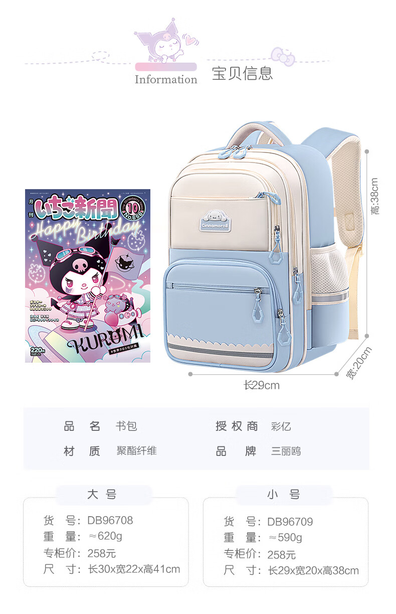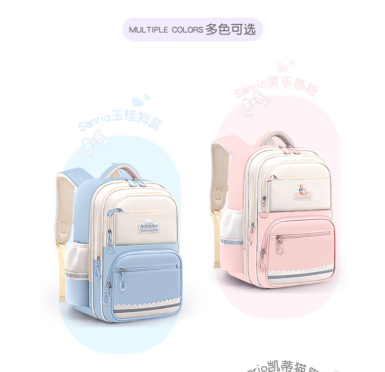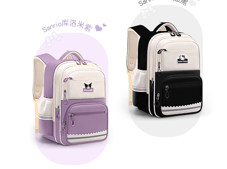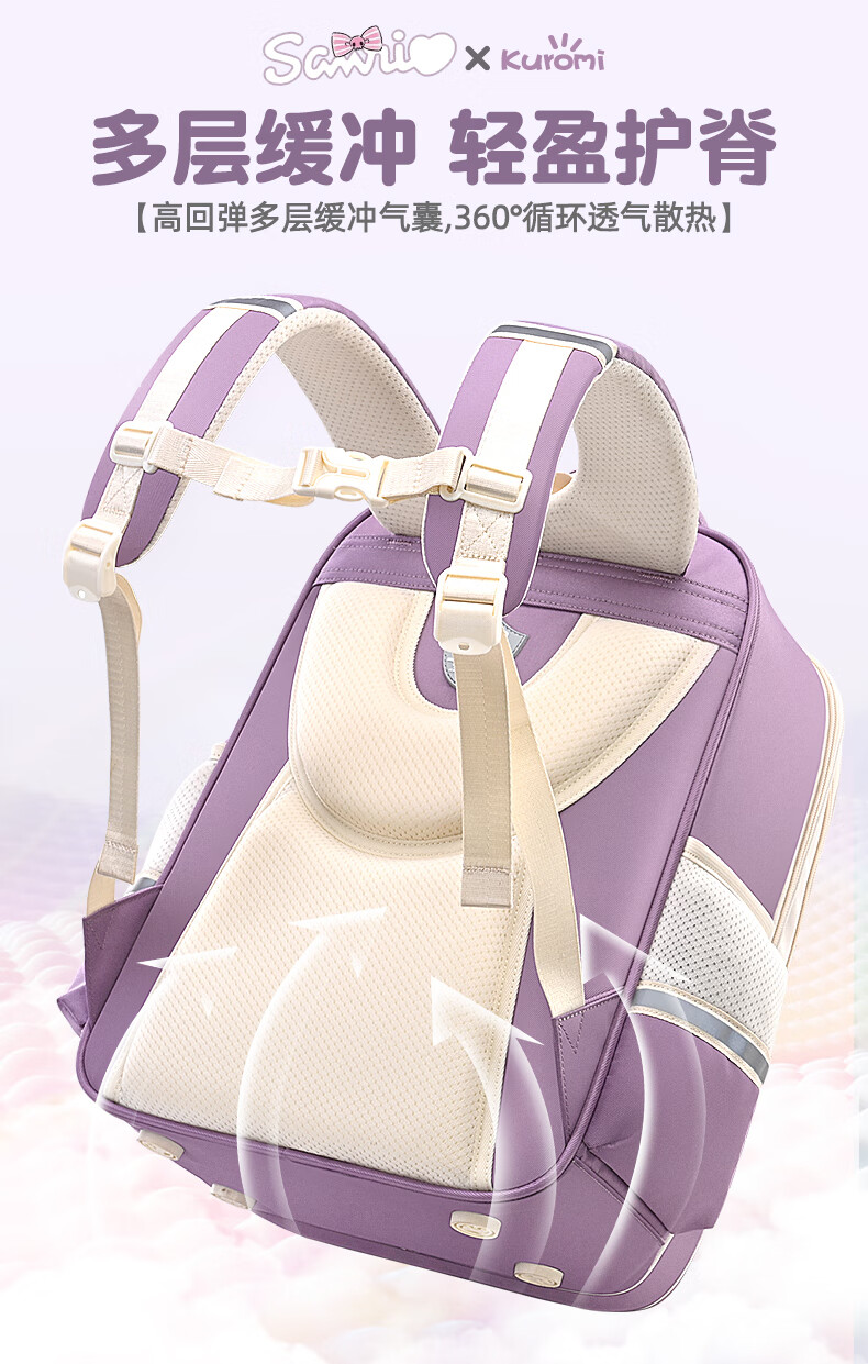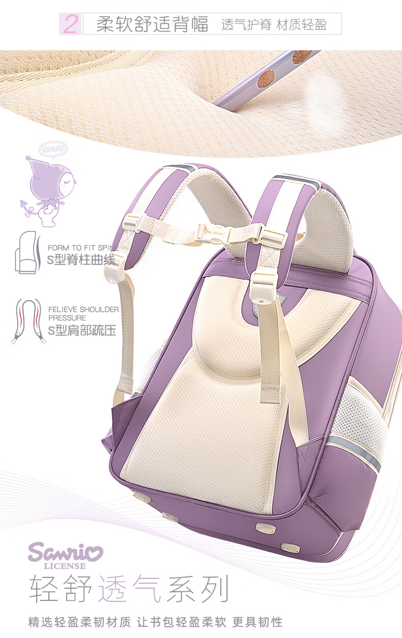 Hello Kitty primary school children's schoolbag girls 1st, 3rd to 6th grade high-looking spine protection water-repellent lightweight breathable backpack 96709 Kuromi purple large size 4-6th grade