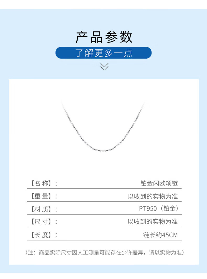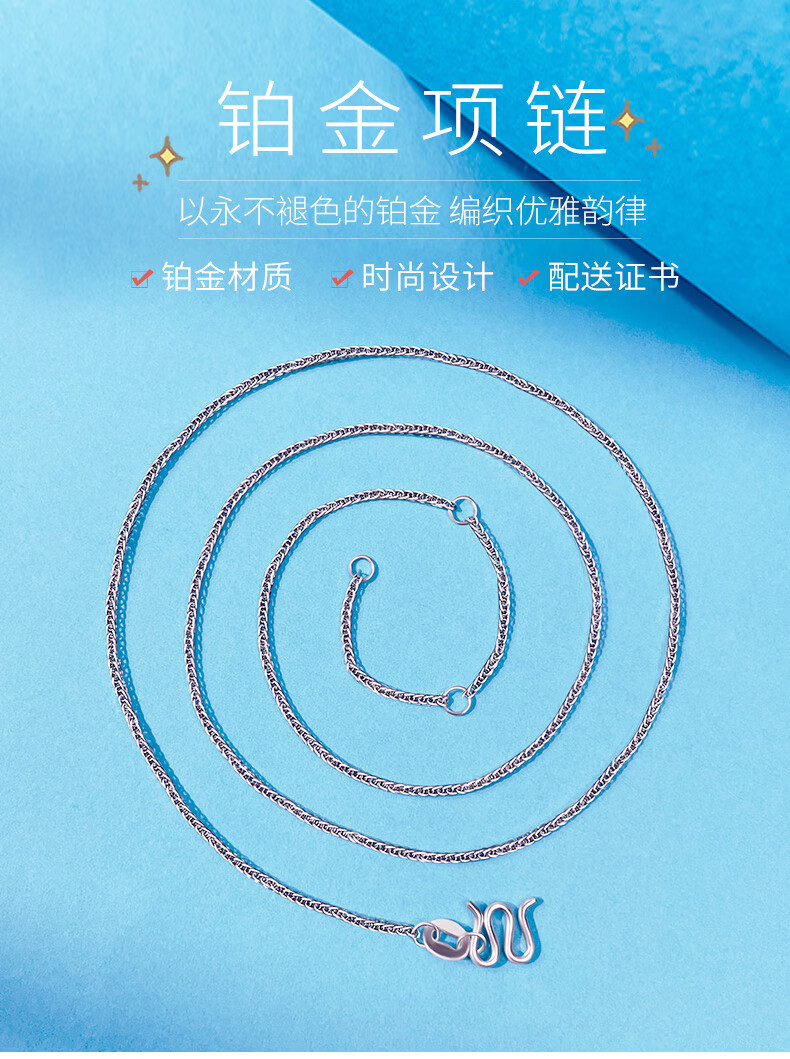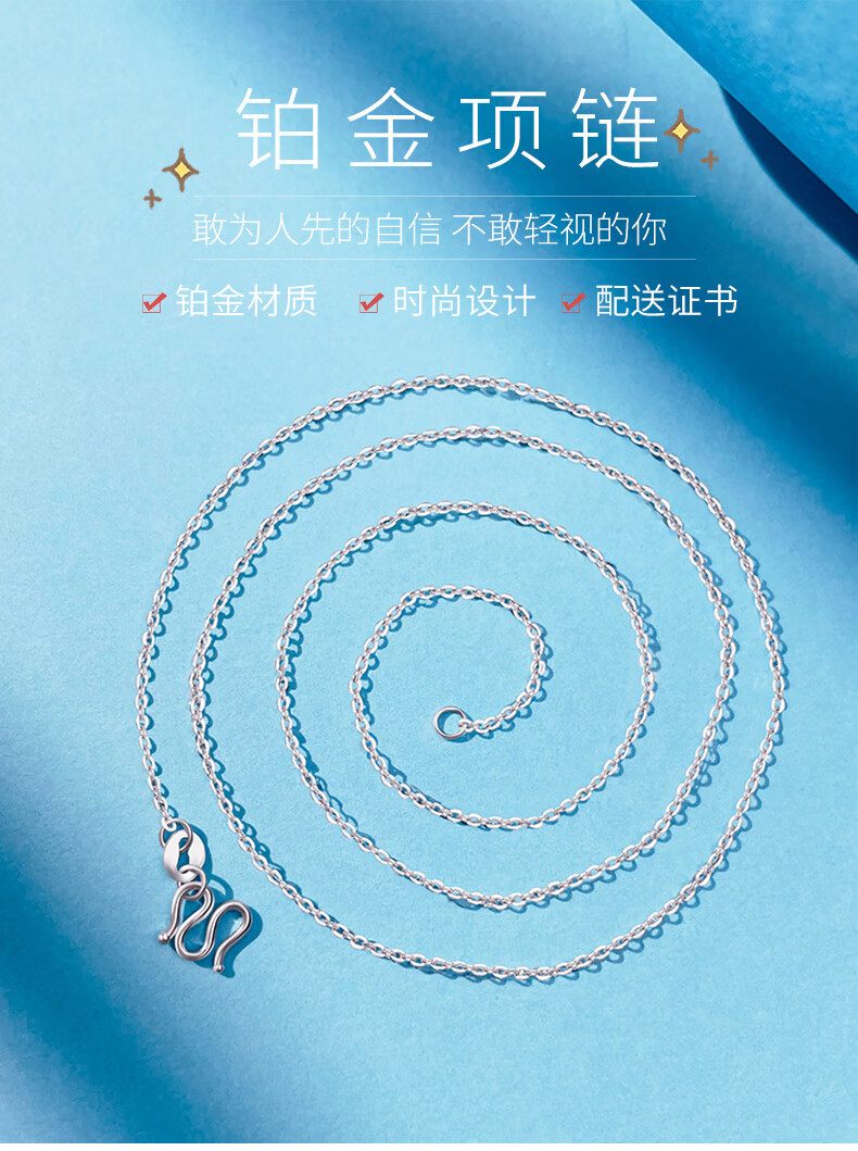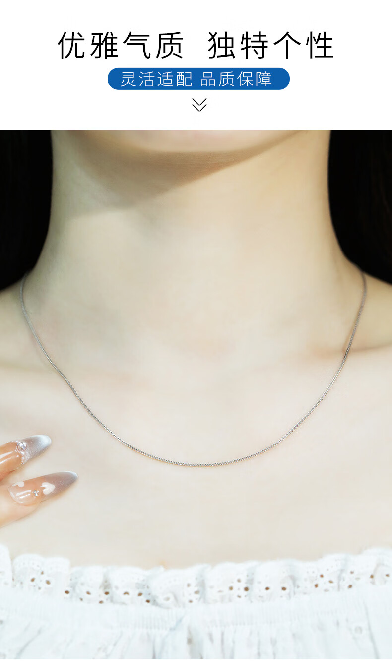 COISE platinum pt950 necklace for women classic all-match plain chain clavicle chain ins platinum necklace as a birthday gift for my wife platinum flash European chain--fashionable and versatile