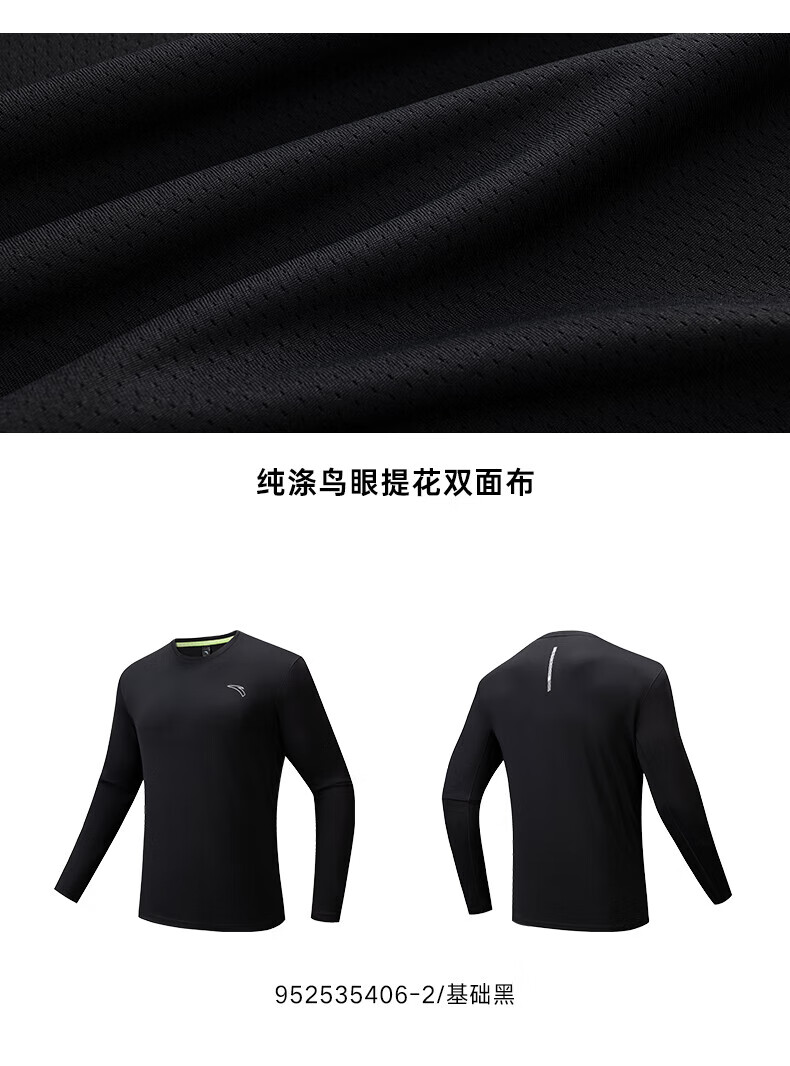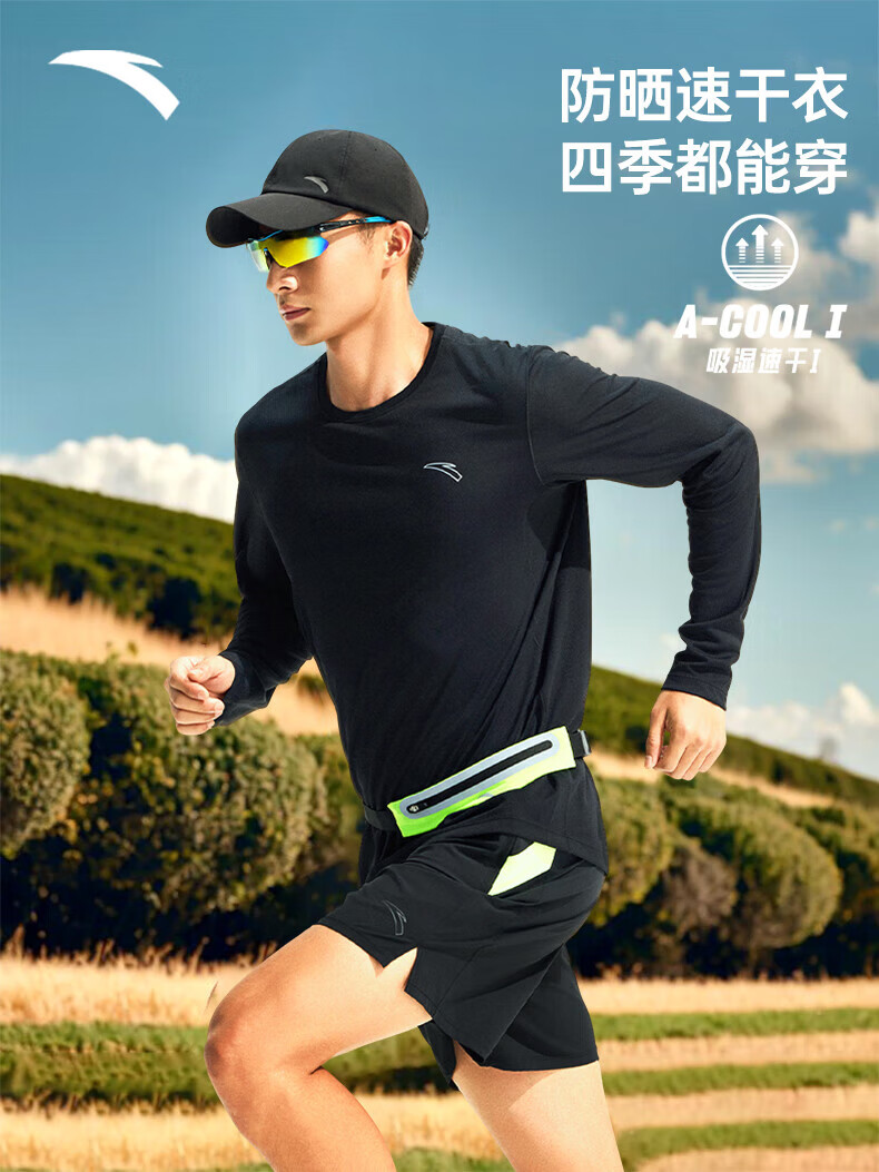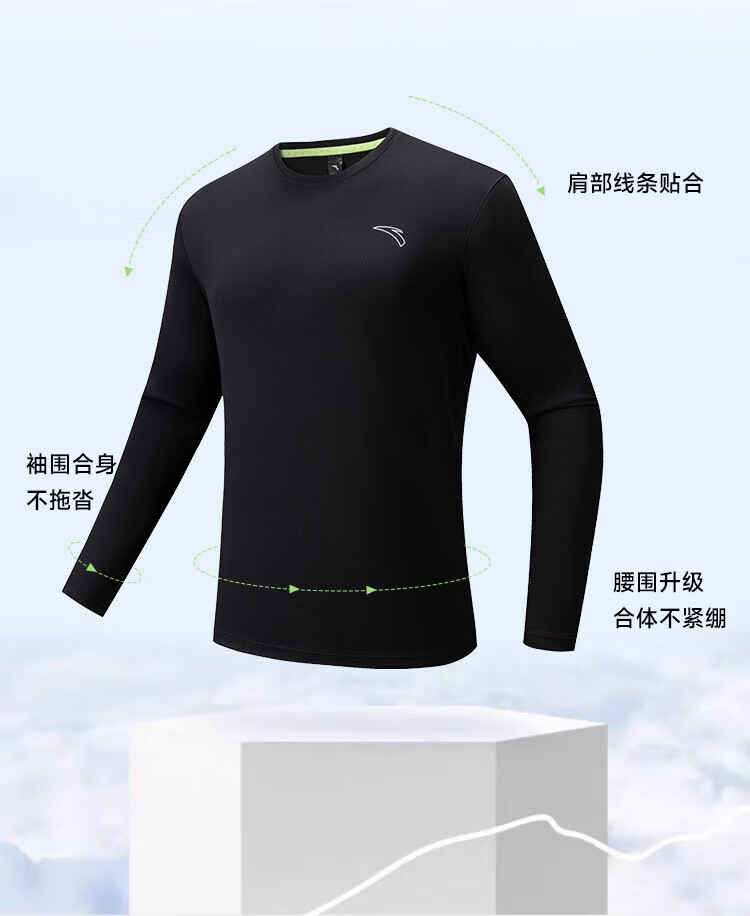 ANTA (ANTA) quick-drying T-shirt for men running autumn long-sleeved quick-drying clothing for men 3A antibacterial moisture wicking fitness sports tops for men solid color quick-drying technology-arm printing pure white M (170) recommended 120-130Jin Jin equals 0.5 kg