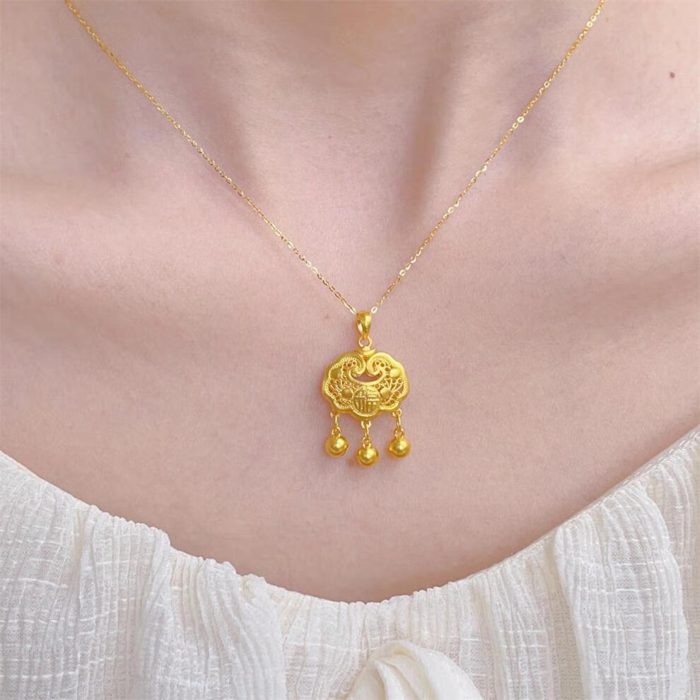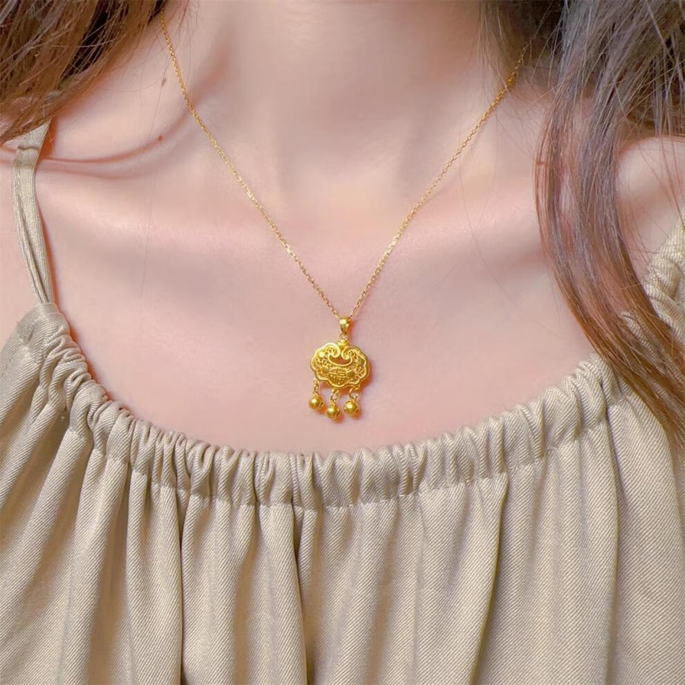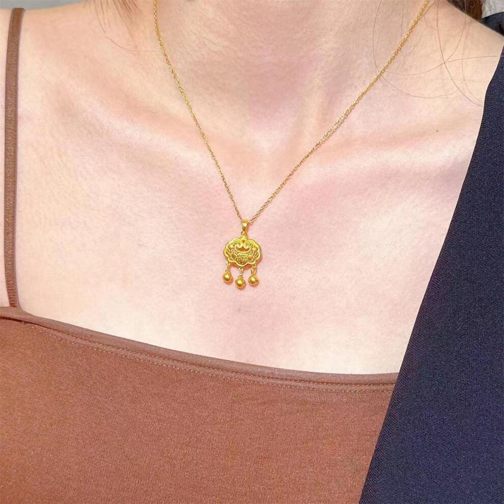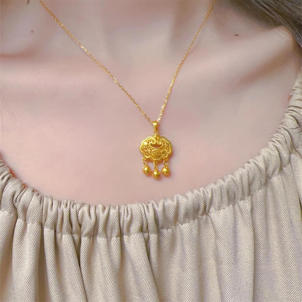 Feng Feili New Chinese Style 18K Gold-Plated Peace Lock Necklace Women's 2025 Light Luxury Versatile Chain Lucky Bag Peace Lock Necklace