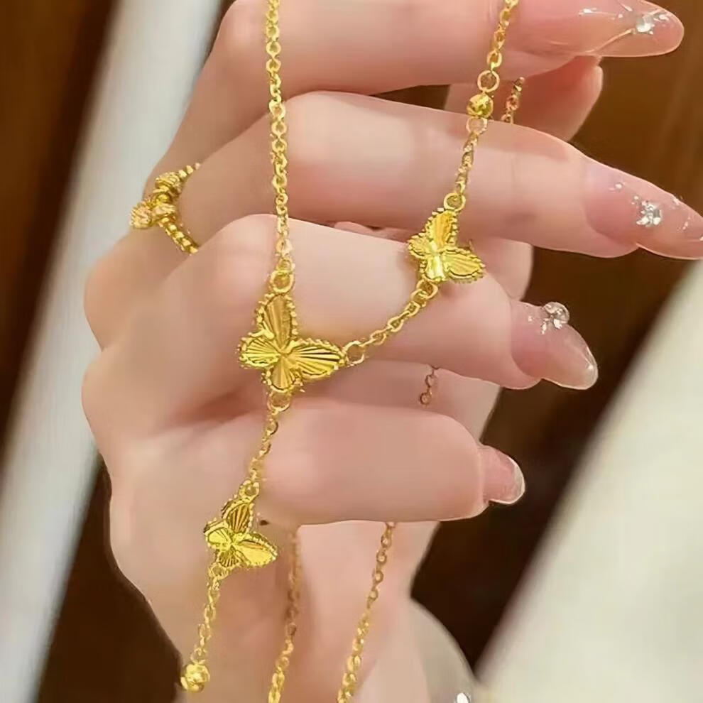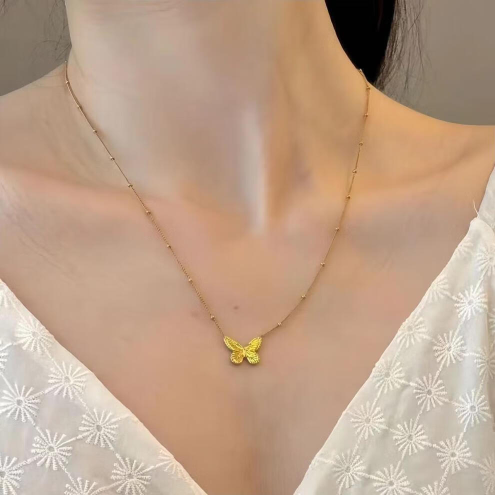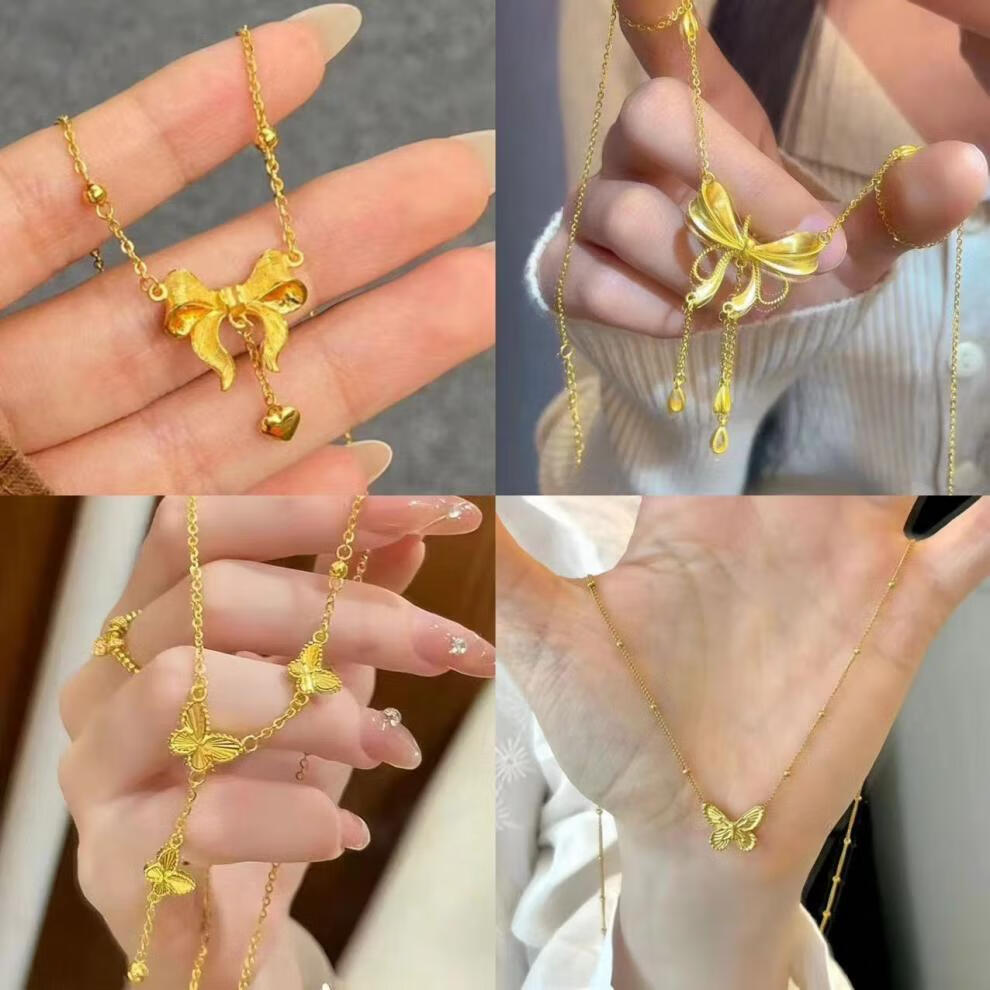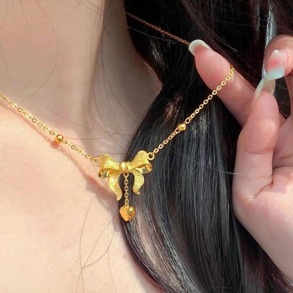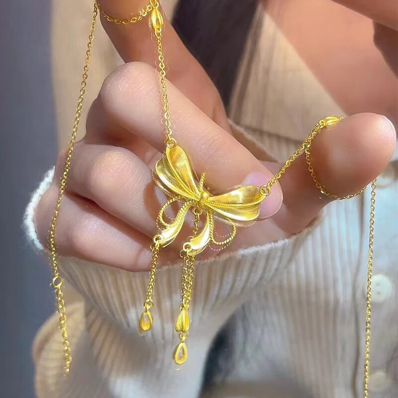 Feng Feili Fugitive Princess Clavicle Chain 2025 New Bow Tassel Necklace for Women 18K Gold Gold Bead Butterfly Tassel Necklace