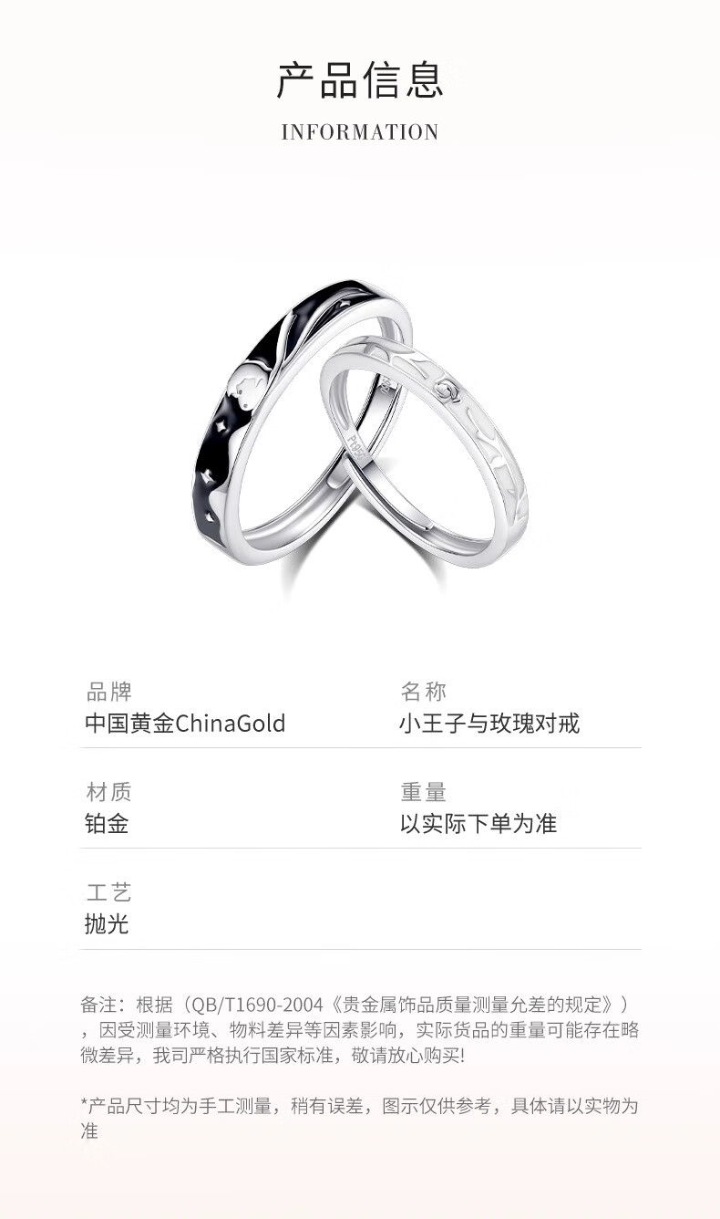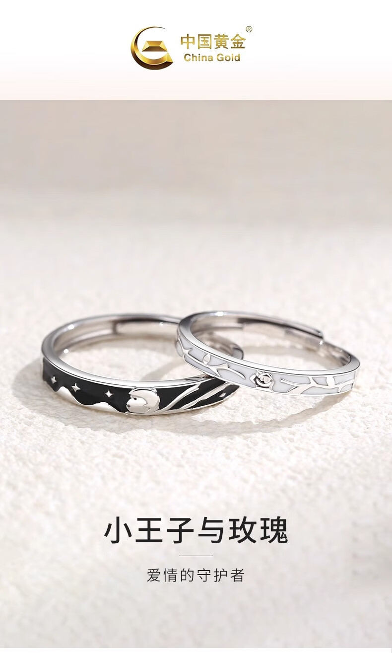 China Gold (CHINA GOLD) pt950 platinum ring for women, platinum little prince and rose couple ring, pair of rings, birthday gift for girlfriend, platinum little prince and rose ring, couple model, about 4.8g + brand gift box