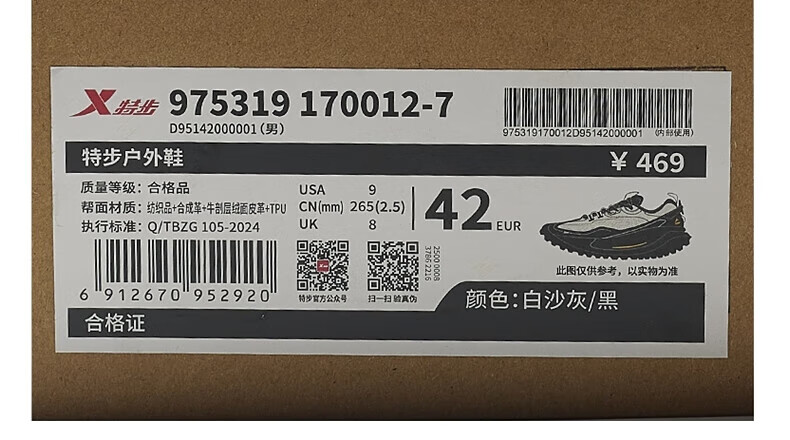 Xtep store same style Feishi 2.0v2 outdoor shoes for men 2025 autumn mountaineering cross-country sports shoes 975319170012 white sand gray/black 42