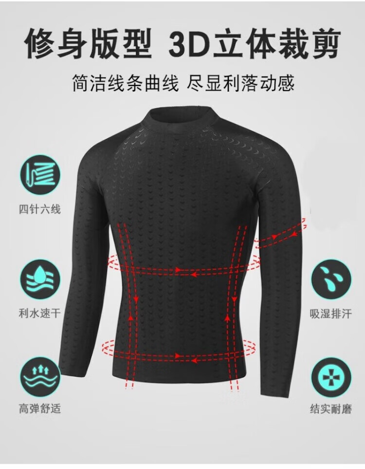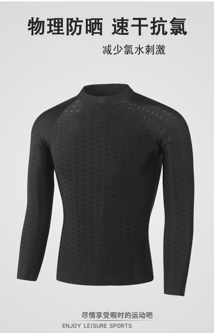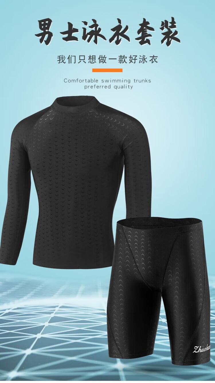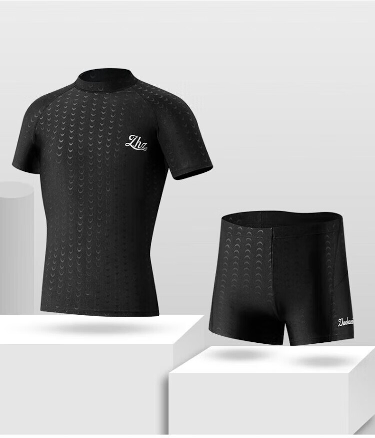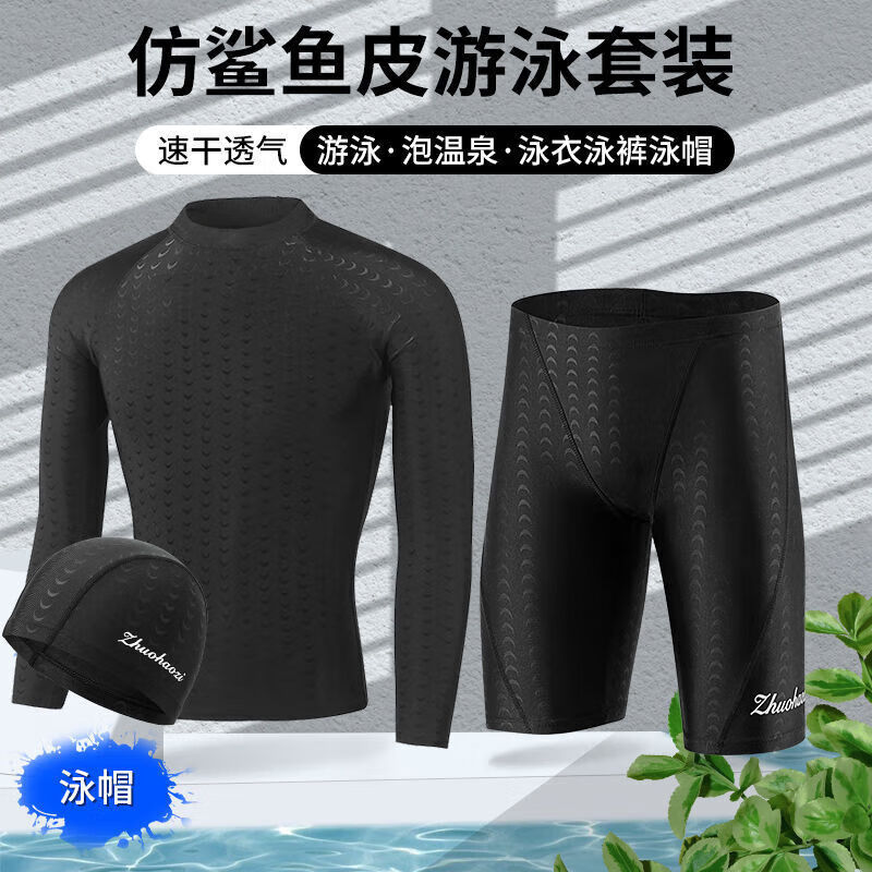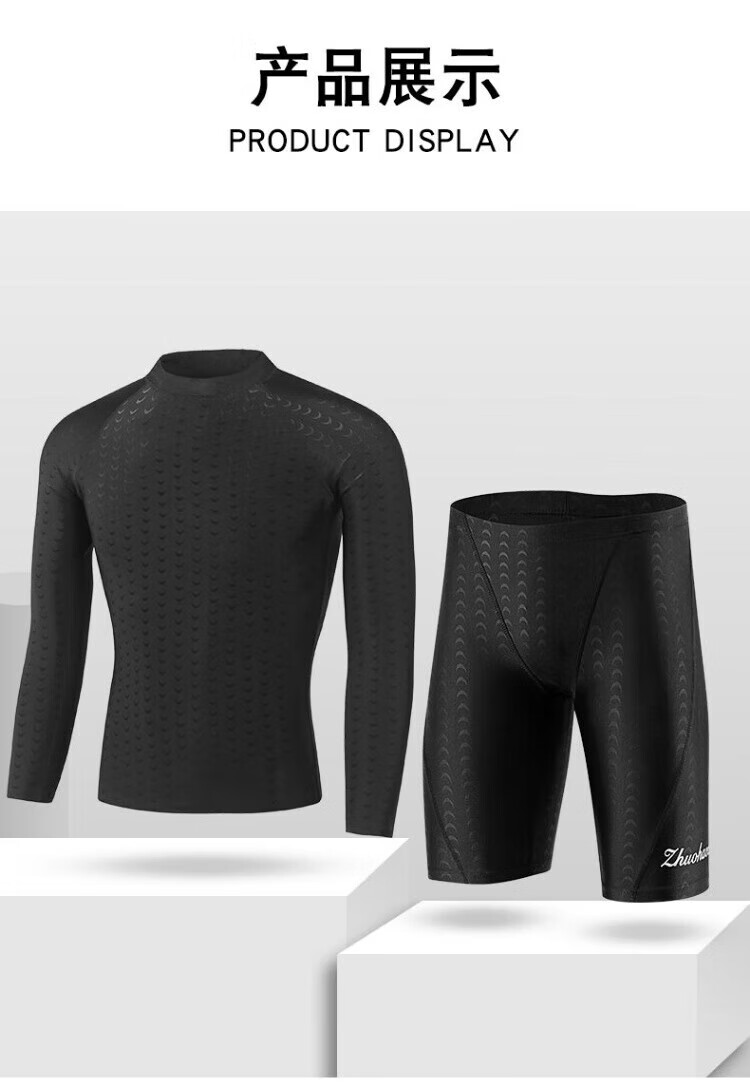 MIEHONE swimsuit men's full-body long-sleeved awkward five-point swimming trunks swimsuit men's swimsuit suit quick-dry imitation shark black electroplated five-piece set 2XL (recommended 120-140Jin Jin equals 0.5 kg)