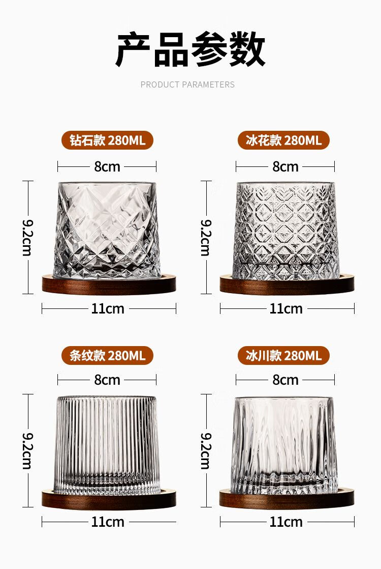 Whiskey special glass, wine glass, foreign wine glass, light luxury rotating crystal cup-like tray, rotating glass beer glass, mixed diamond style + glacier style (with bottom, 2 pieces