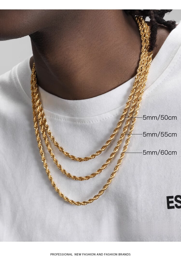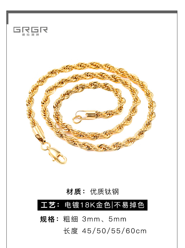 Fat Donglai same style 18k gold necklace men's GRGR shorttwistchain gold twist chain 18K gold necklace gold 4mm45cm
