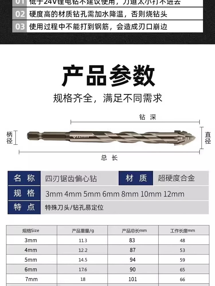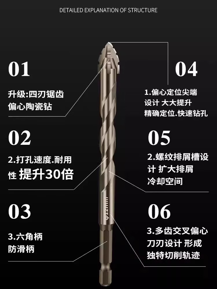 JCZS German brand ceramic tile drilling drill bit four-edged serrated eccentric dry drilling marble concrete high hardness hole expander ten times more durable four-edged serrated drill 6+8
