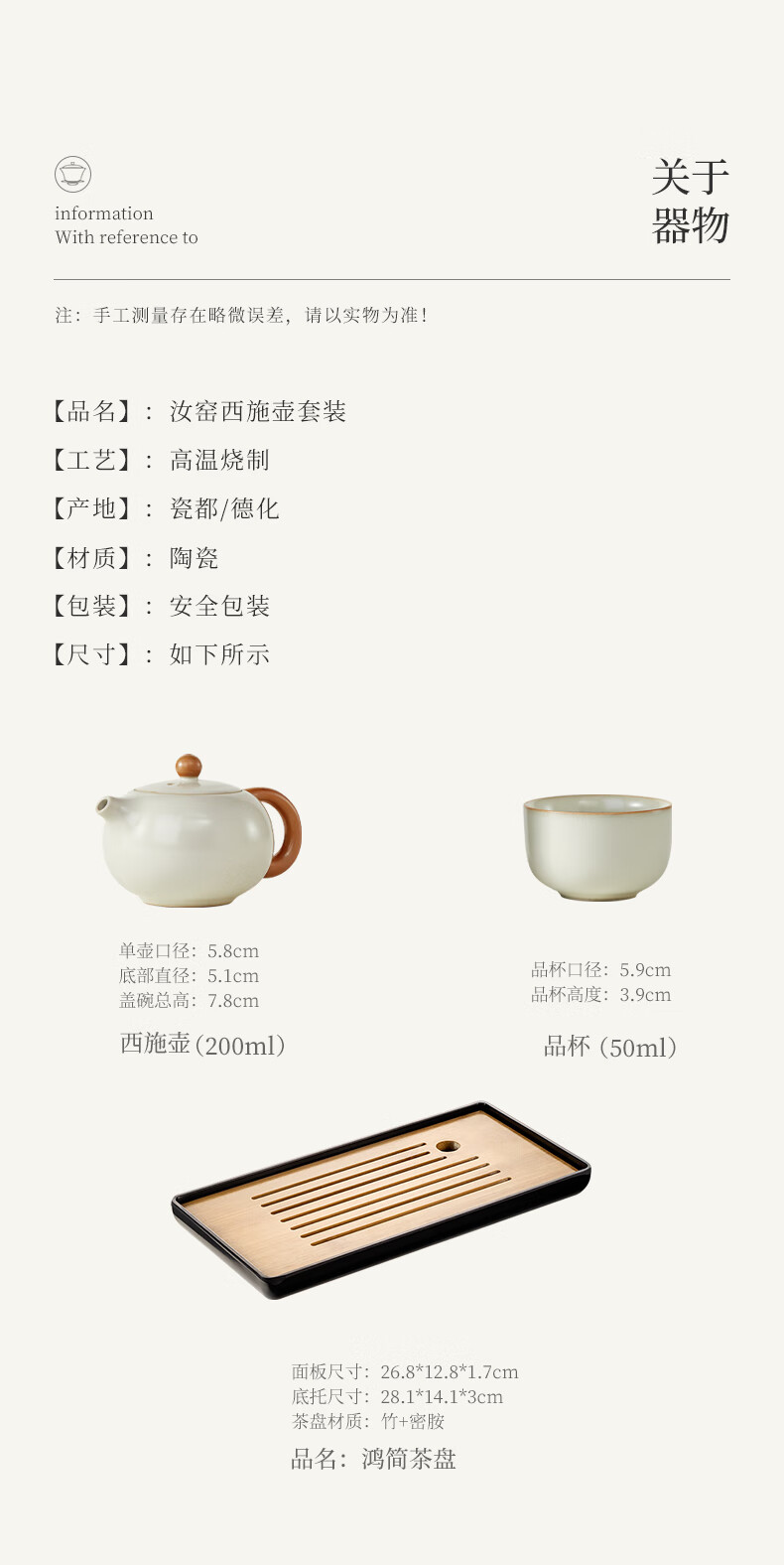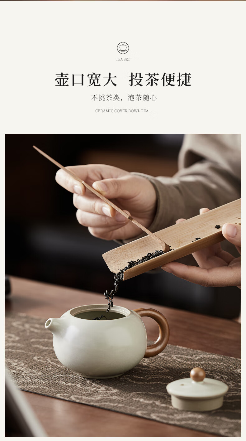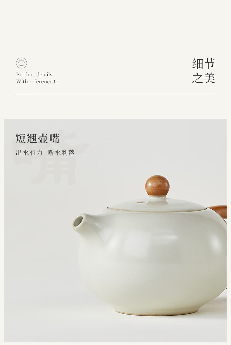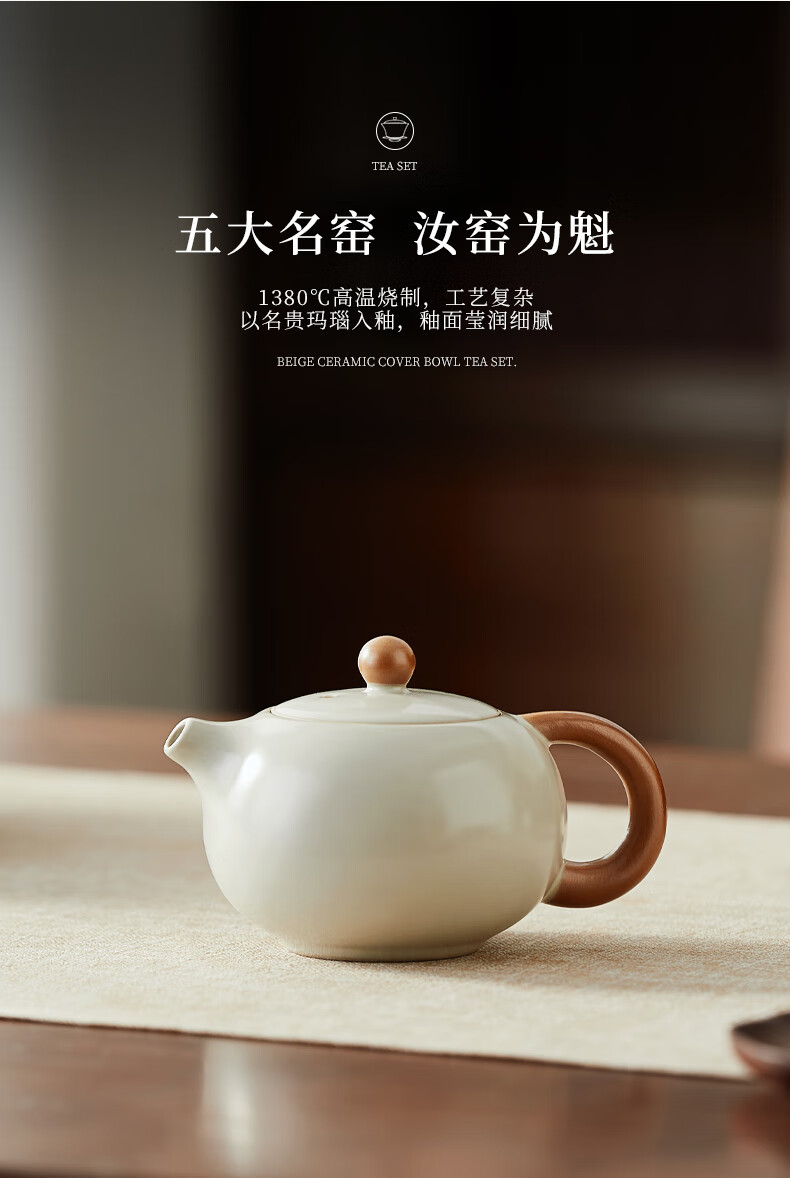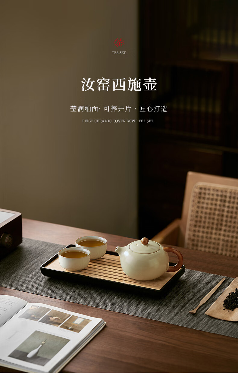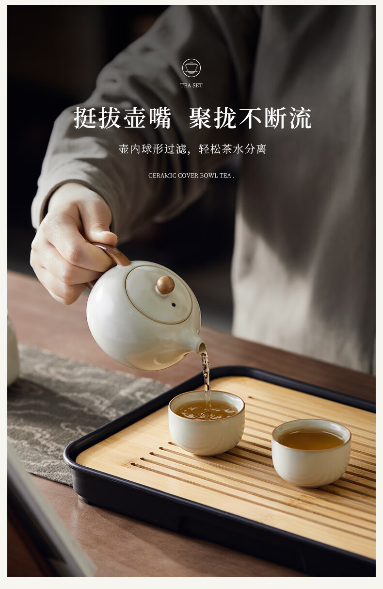 Yipot Tea Ru Kiln Teapot Household Ceramic Teapot New Kung Fu Tea Set Office Guest Drinking Teapot Small Teacup One Pot 2 Cups Xishi Pot + Perfect Cup