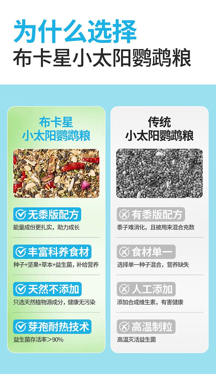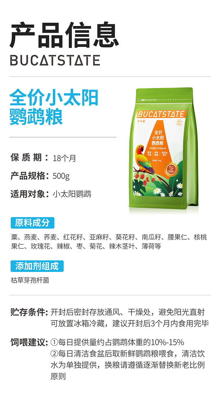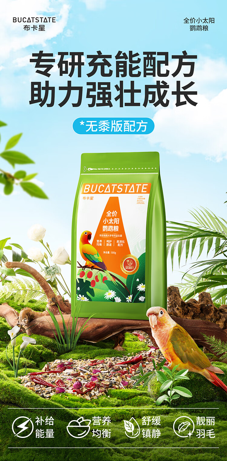 Buka Star full price small sun special parrot bird food probiotics monk bird feed canary seeds yellow millet snacks full price small sun parrot food - 500g