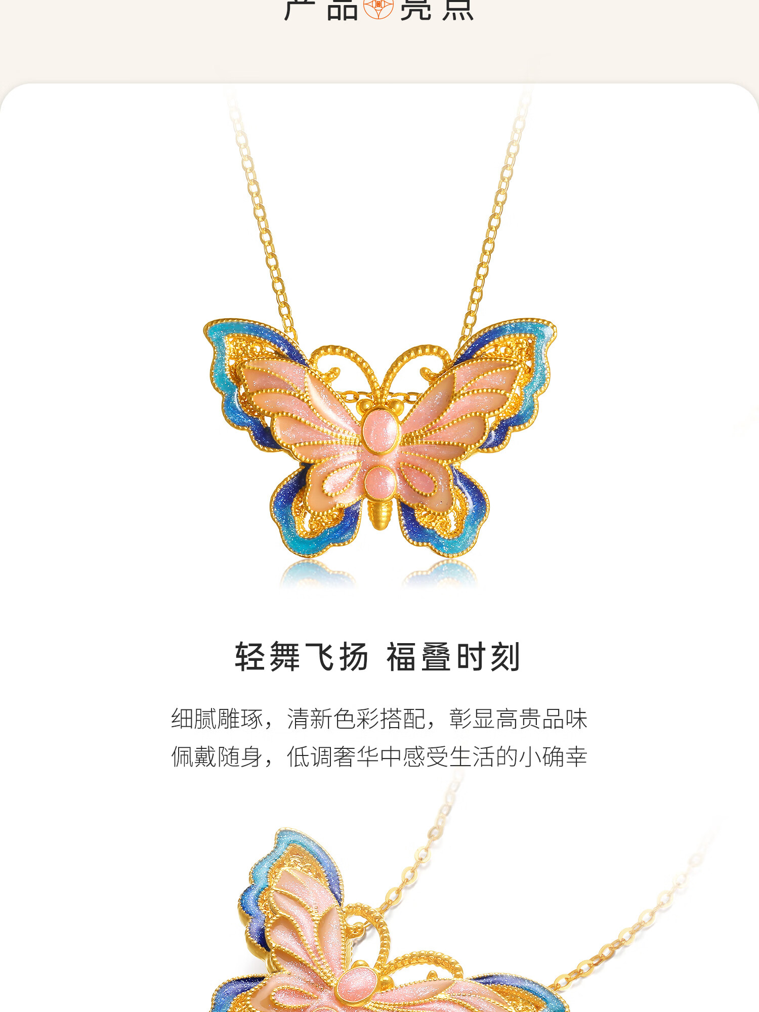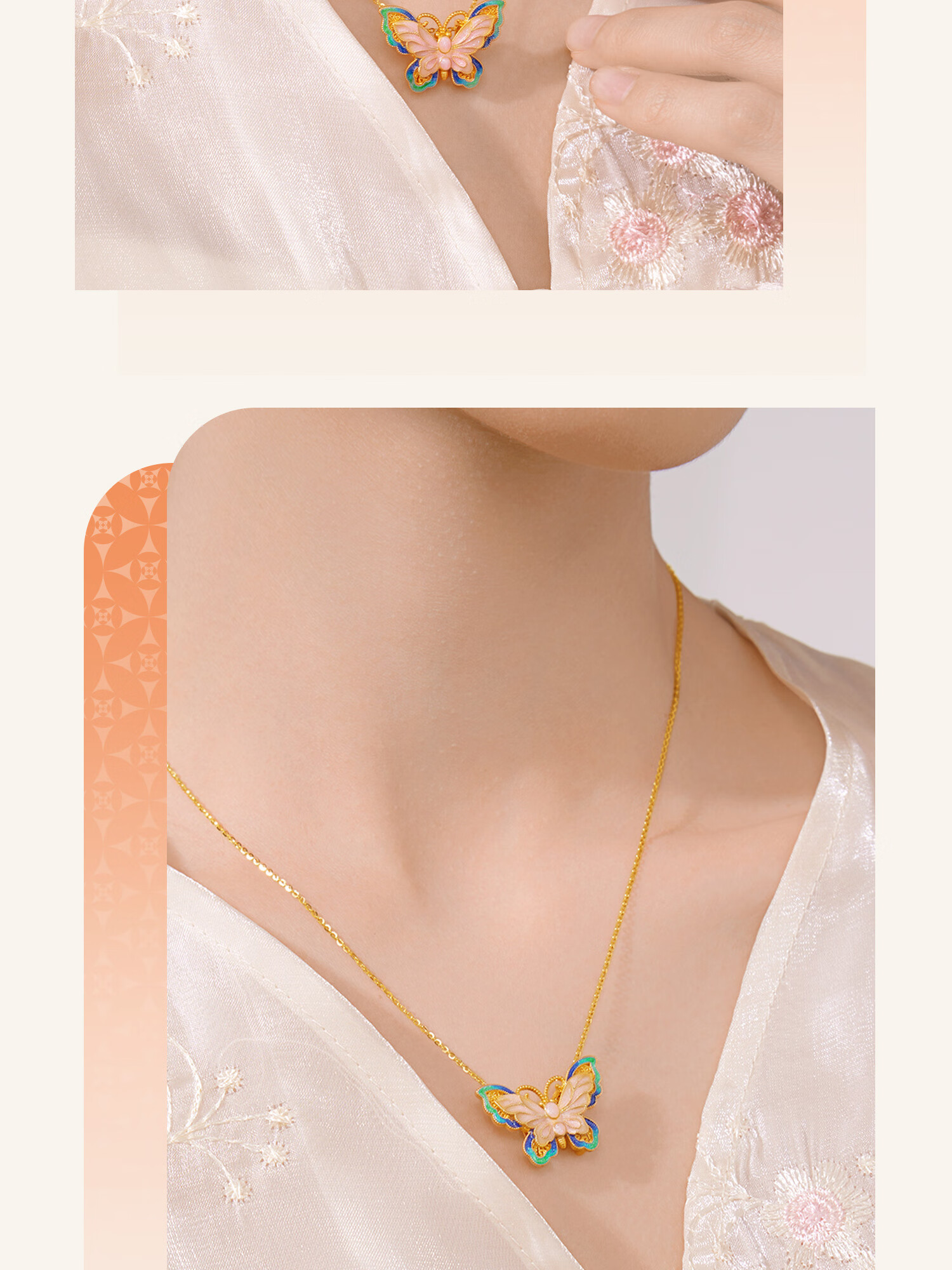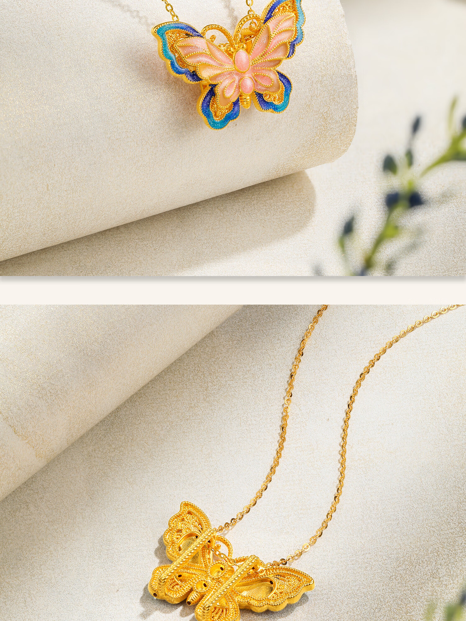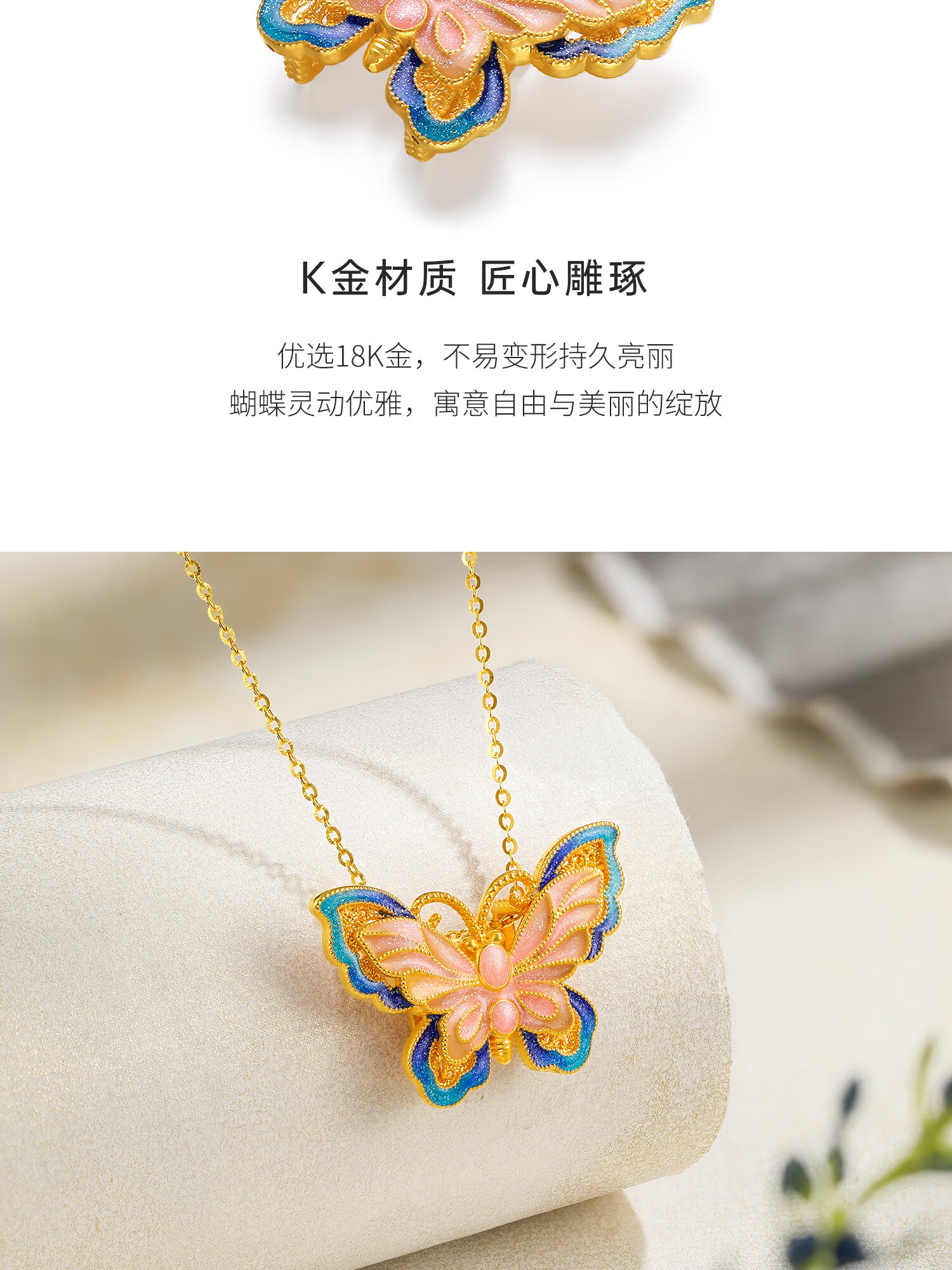 Century Yuan Jewelry 18K gold enamel pendant for women, elegant colorful butterfly lasting bright pendant for girlfriend, K gold butterfly pendant, about 0.8g
