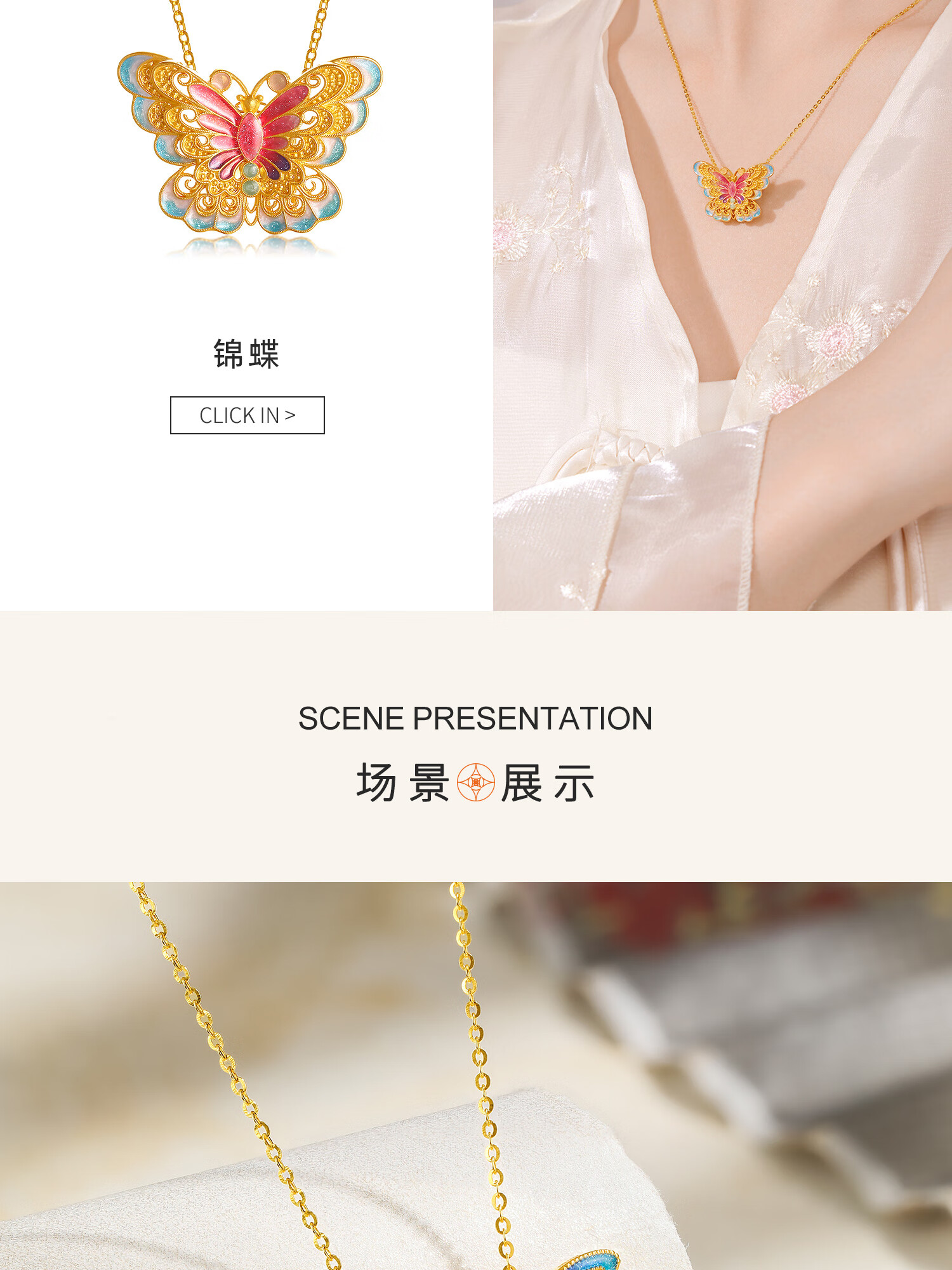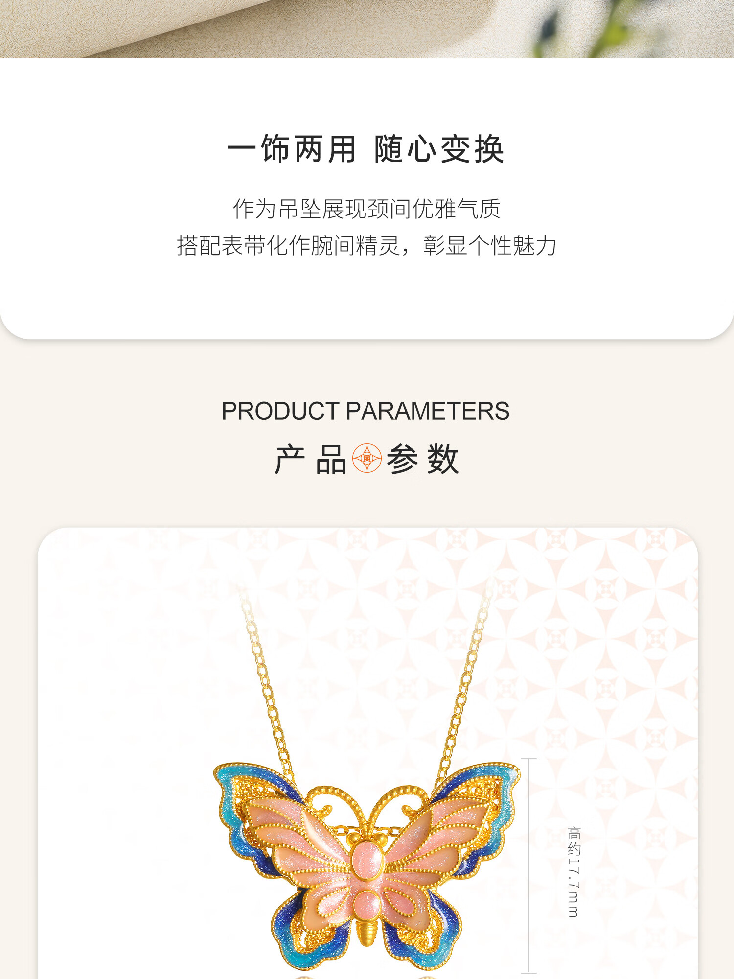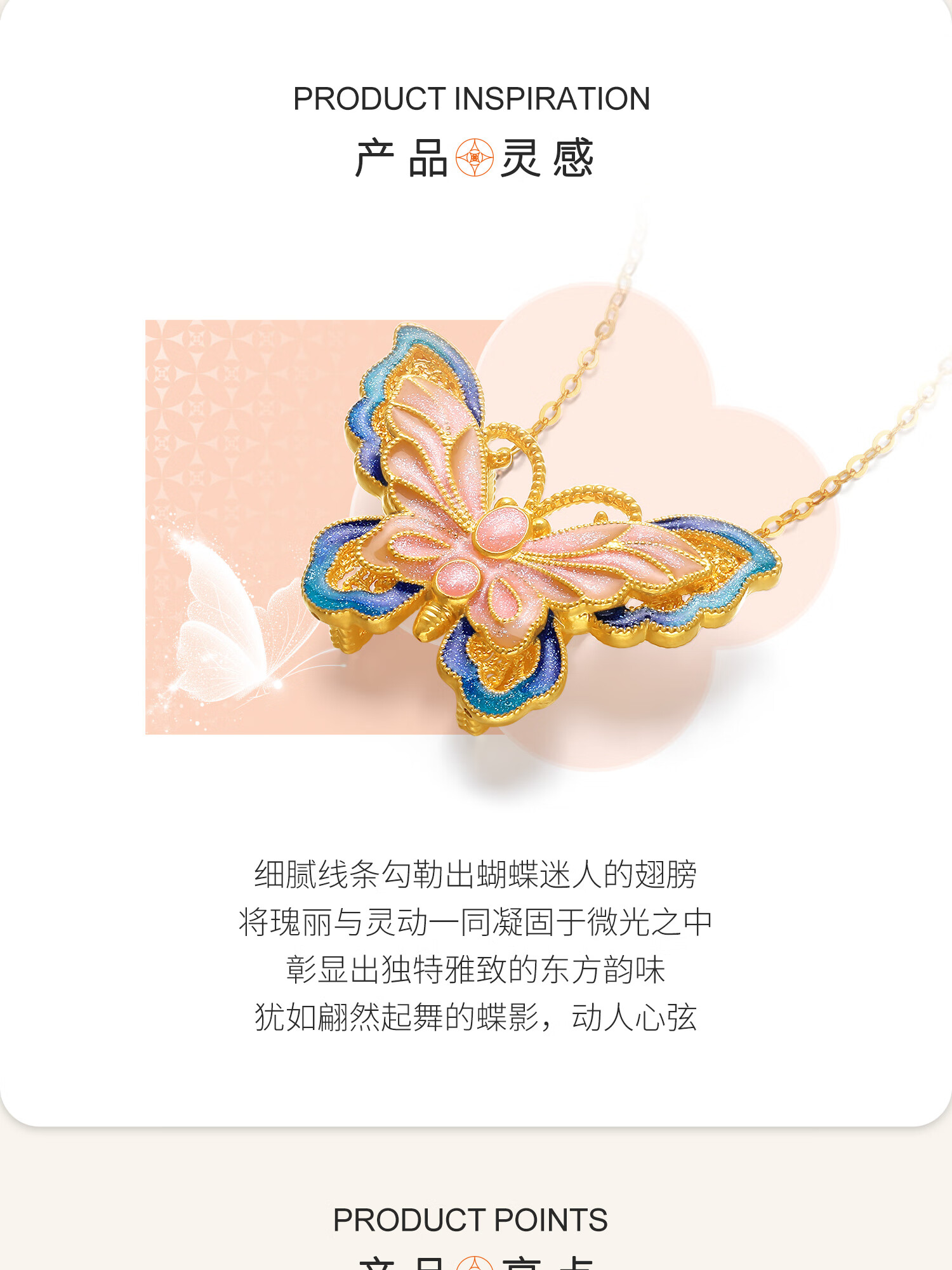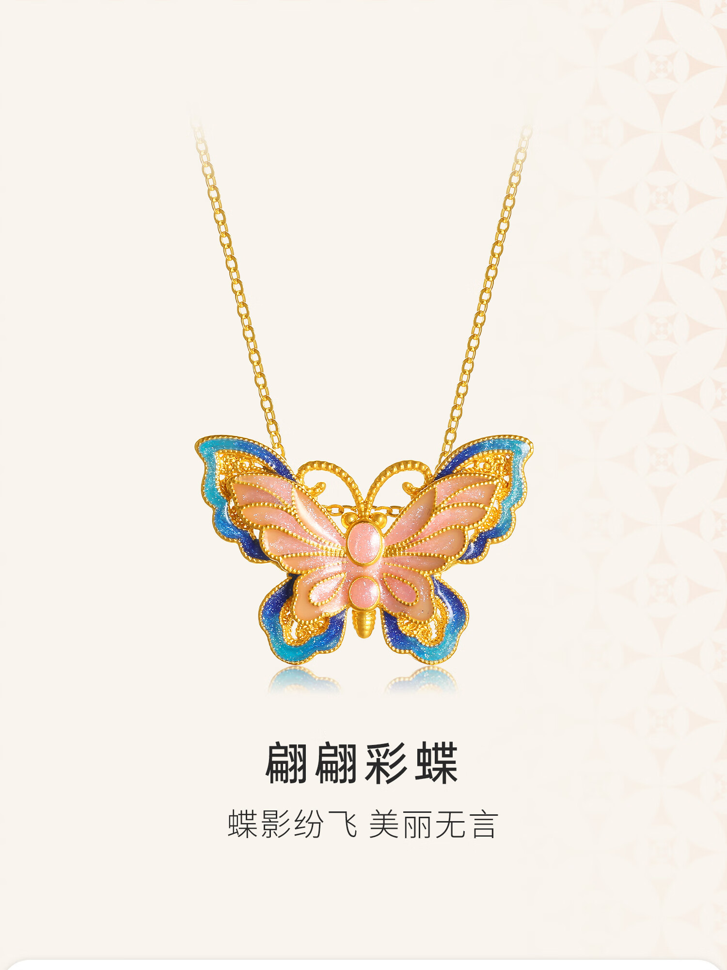 Century Yuan Jewelry 18K gold enamel pendant for women, elegant colorful butterfly lasting bright pendant for girlfriend, K gold butterfly pendant, about 0.8g