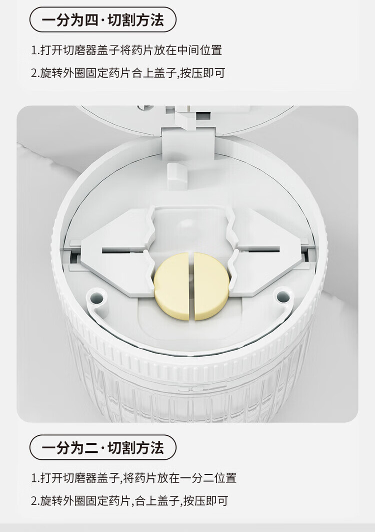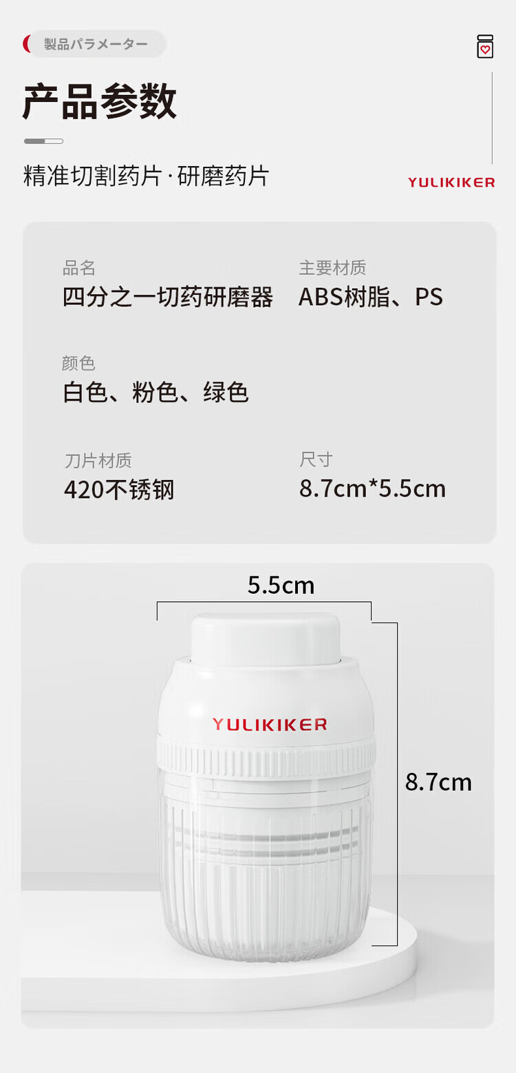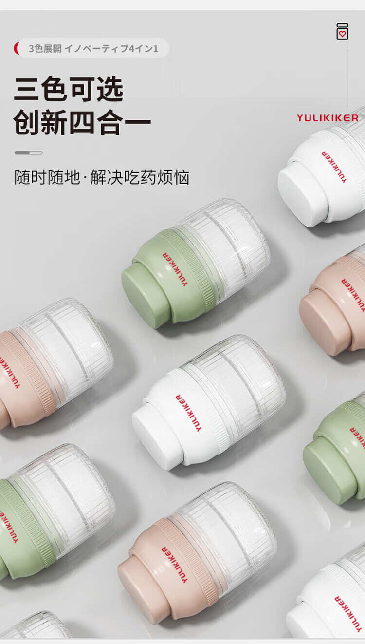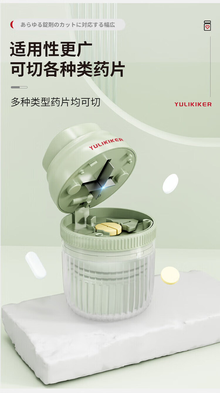 Maimed Japan's one-point, two-one-point, four-point medicine cutting device divides medicine, grinds medicine, cuts medicine tablets, cuts, divides, grinds and grinds medicine medicine box, can grind medicine and medicine cutter green