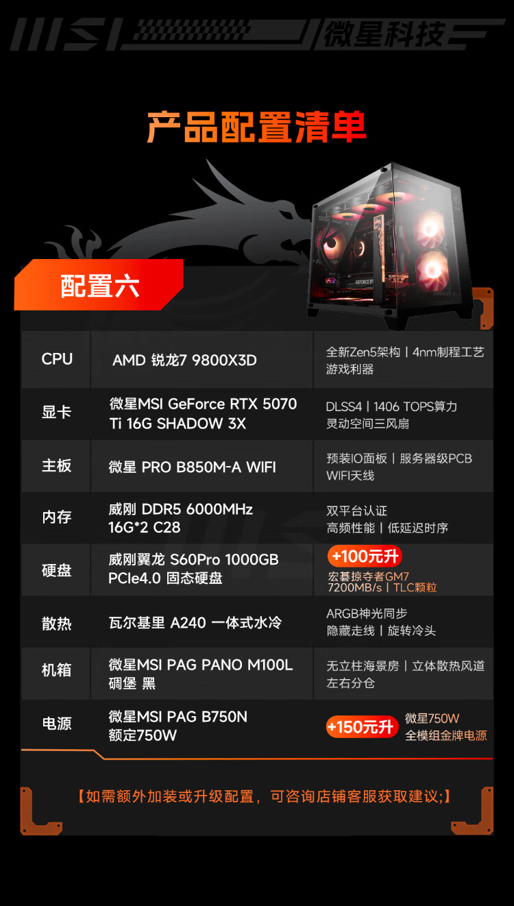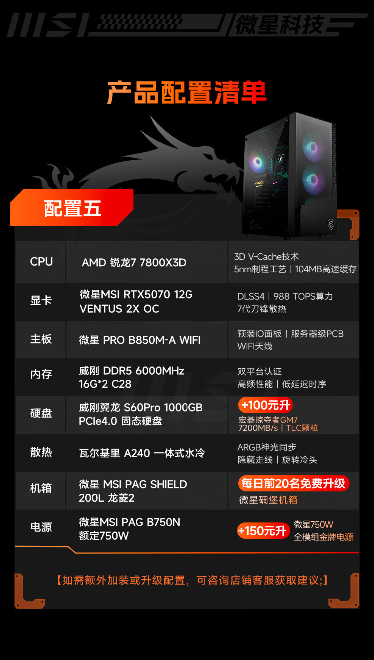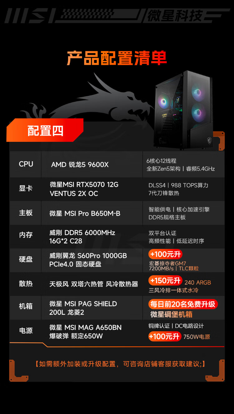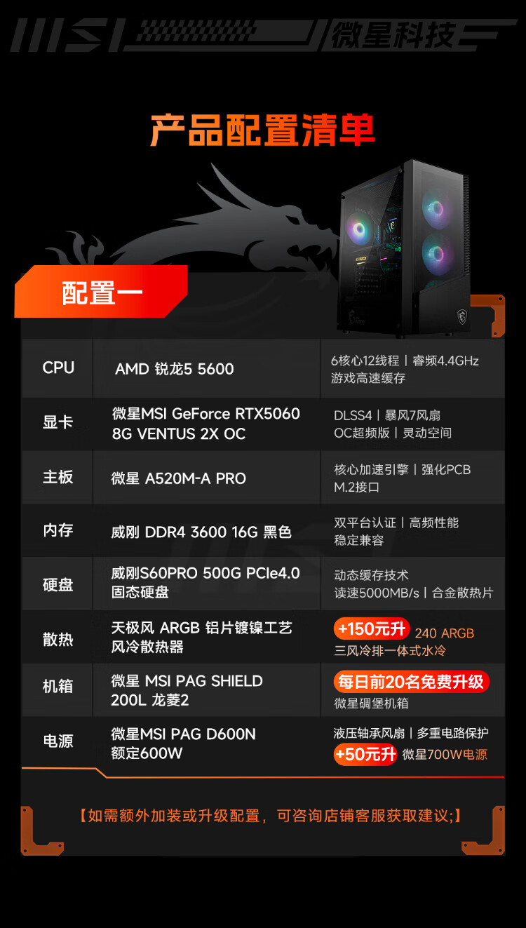 MSI AMD Ryzen 9500F/9600X/7800X3D/9800X3D with 5060/5070 graphics card DIY e-sports assembly desktop complete host game rendering design R5-9600X+RTX5060丨Configuration 2