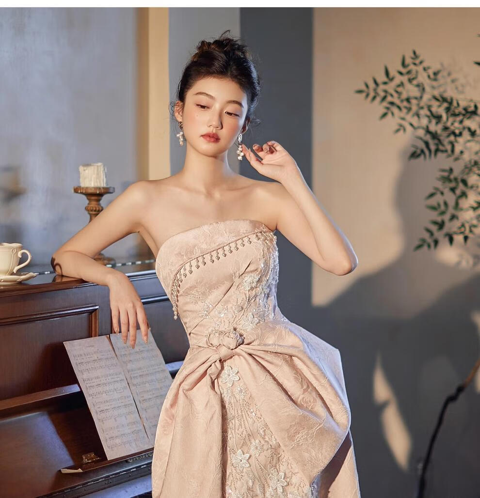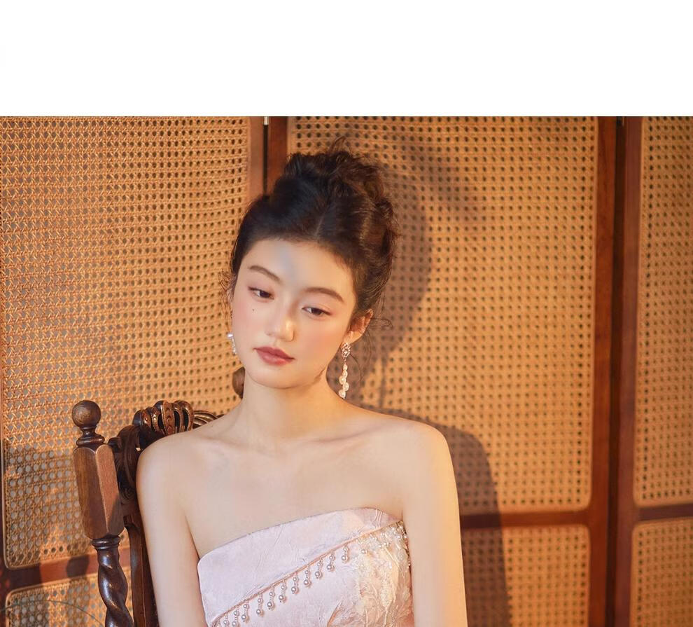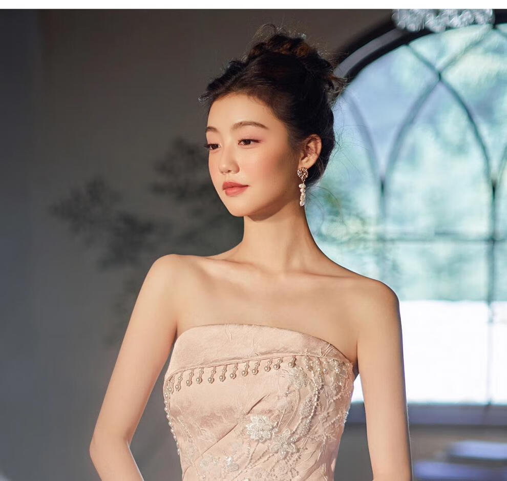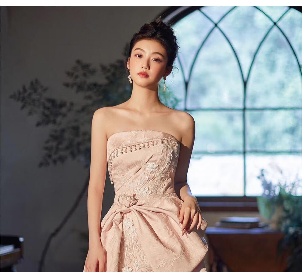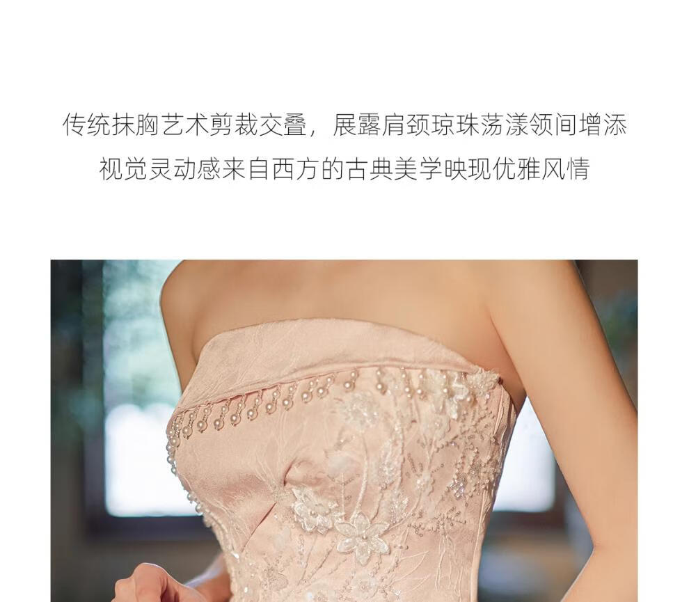 Rich collar toast dress bride can usually wear high-end 2026 new style pink new Chinese evening dress tube top engagement temperament pink L