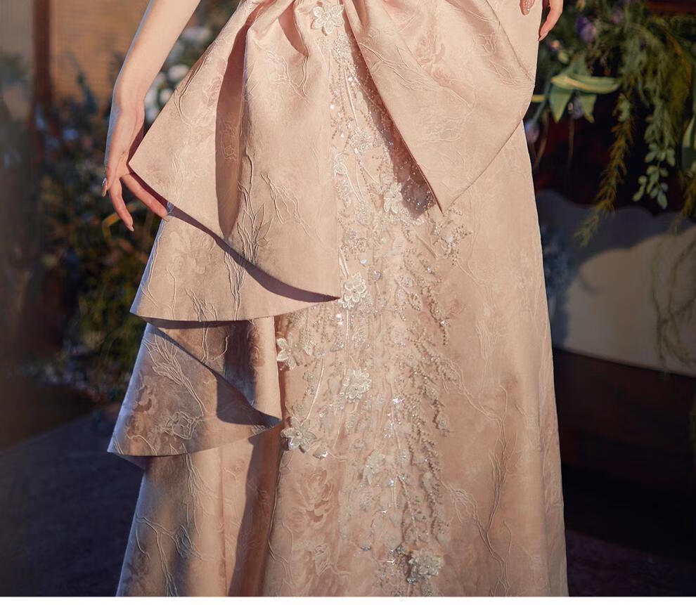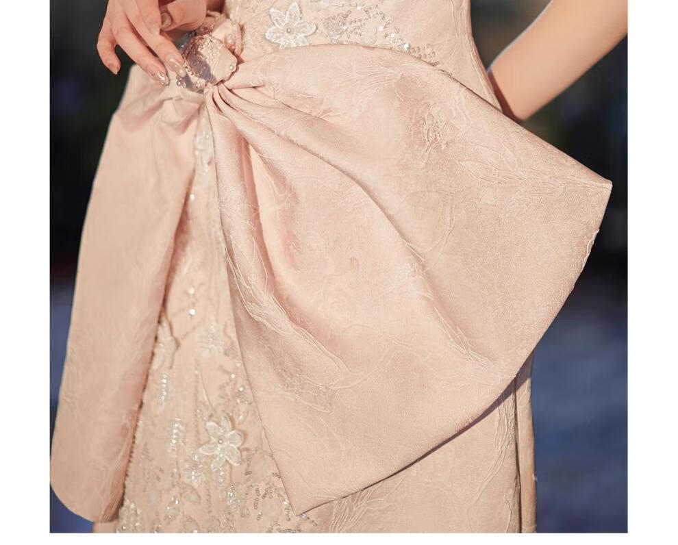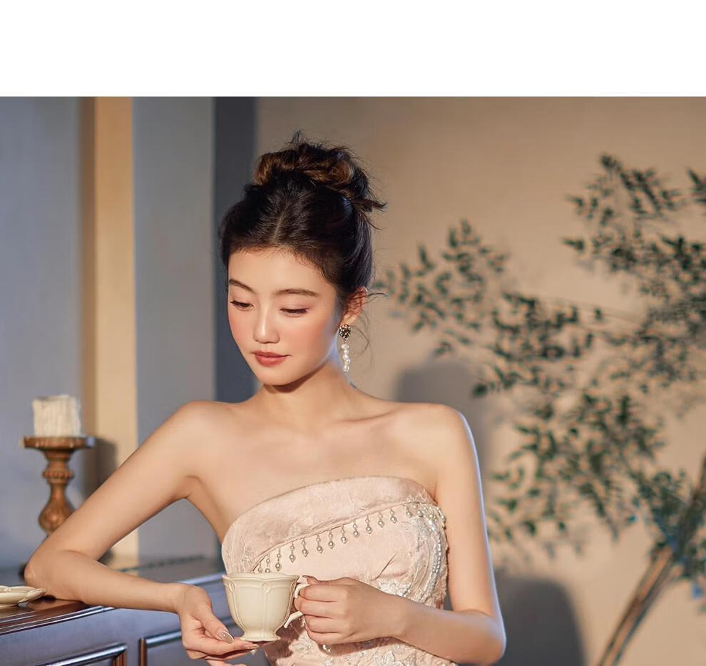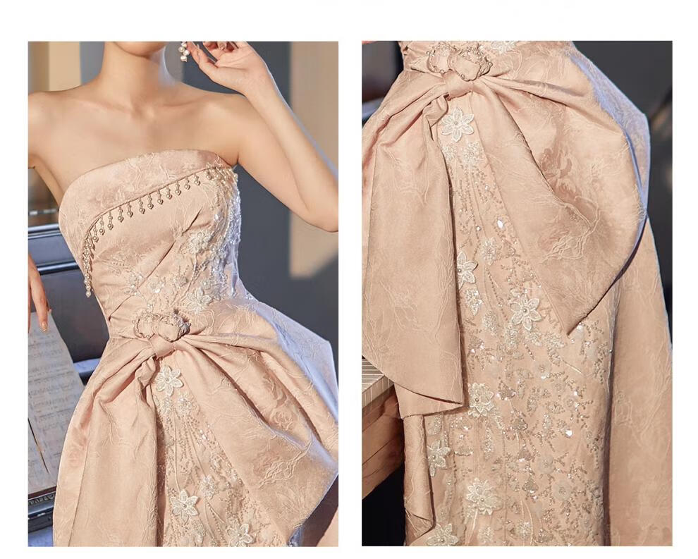 Rich collar toast dress bride can usually wear high-end 2026 new style pink new Chinese evening dress tube top engagement temperament pink L