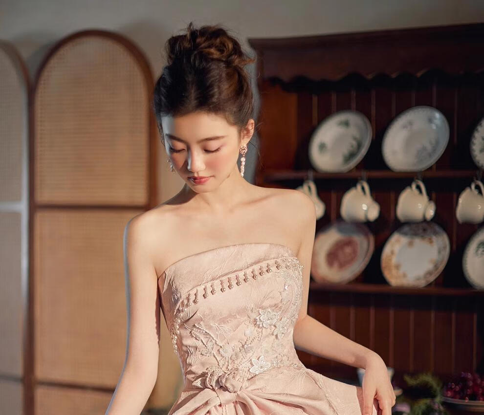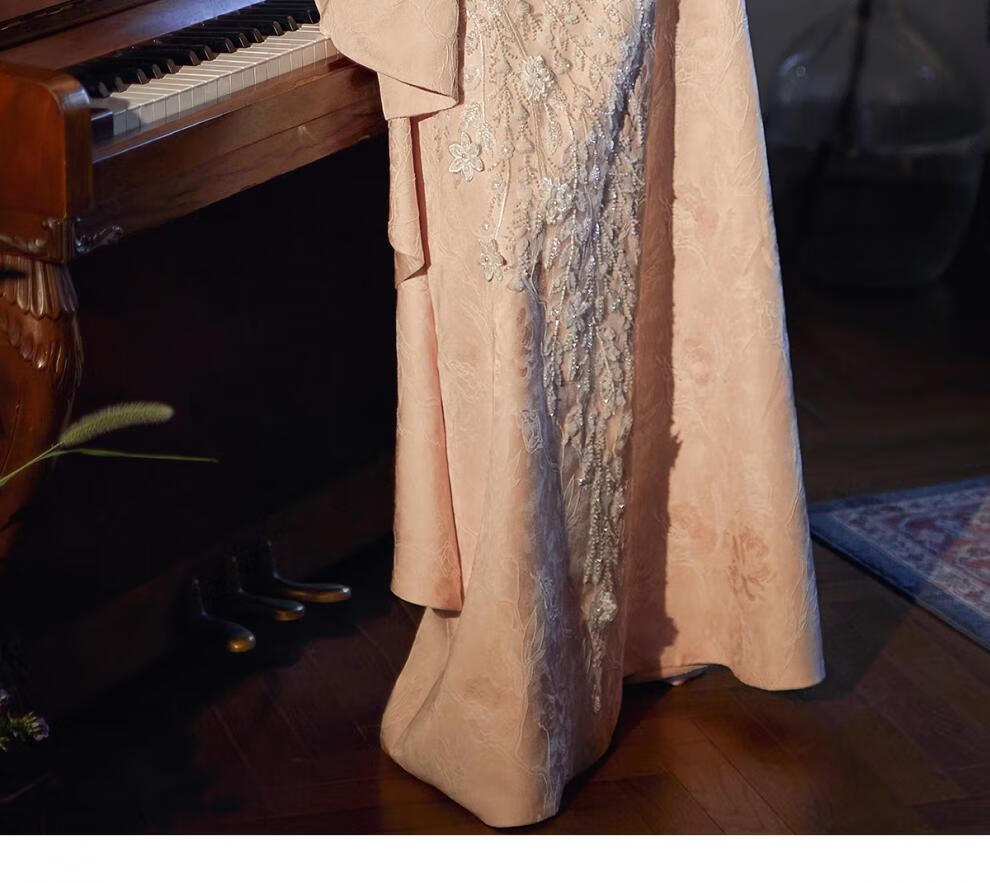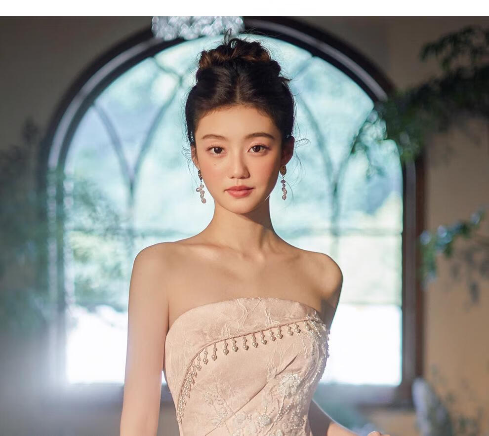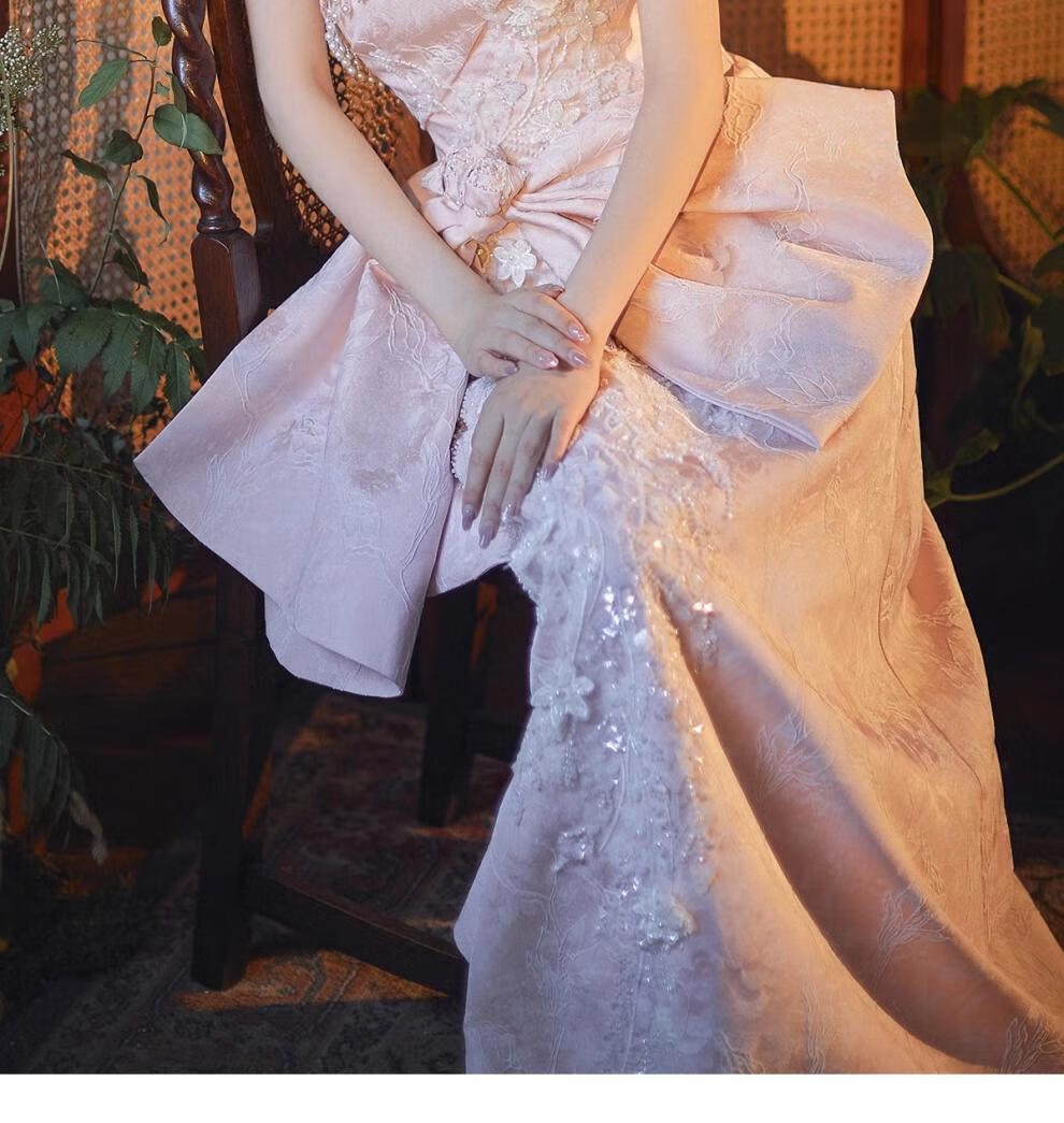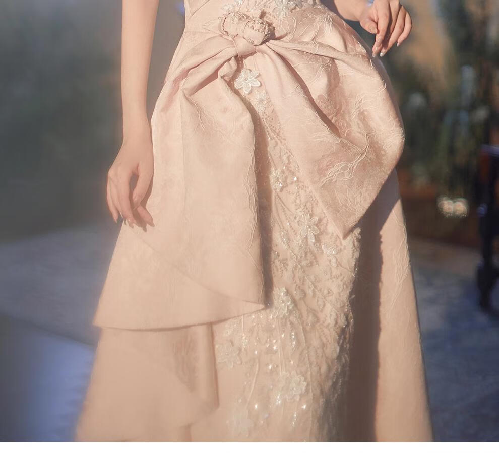Rich collar toast dress bride can usually wear high-end 2026 new style pink new Chinese evening dress tube top engagement temperament pink L