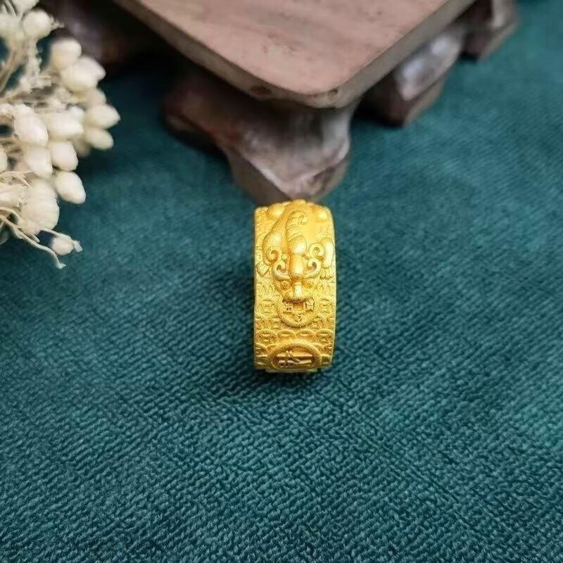 GAUSS CARLER Old Phoenix 999 gold pure gold gold-plated silver-plated Pixiu ring open retro non-fading men's ring Pixiu open ring same style 6.8 g