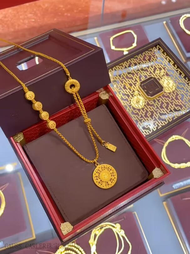 GAUSS CARLER Old Phoenix 999 gold pure gold gold-plated silver peace and joy eight treasures compass pendant braided necklace women's set chain peace and joy eight treasures compass braided necklace