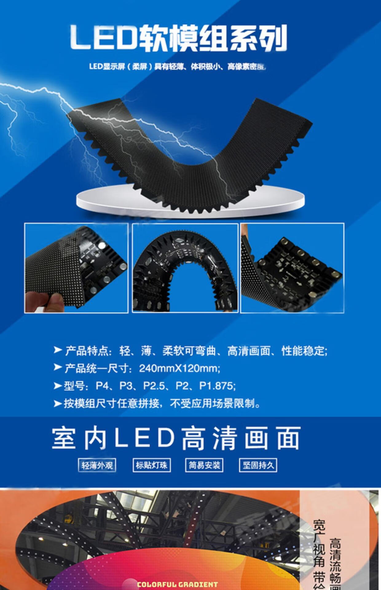 LED display round flexible curved screen curved screen advertising cylindrical screen special-shaped screen character P2.5 soft module indoor P0.9240*120mm