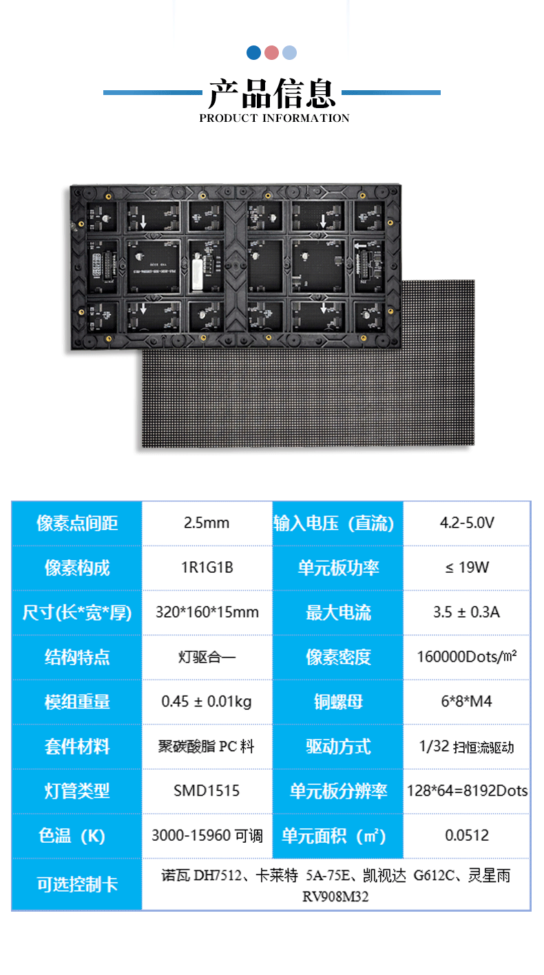 P2.5 indoor full-color LED module exhibition hall conference room advertising electronic screen 320*160mm LED unit board Default