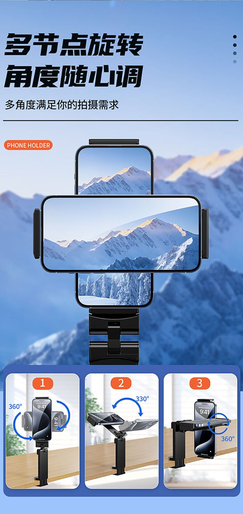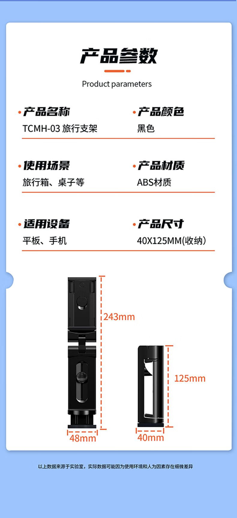 Paifan (oatsbasf) travel folding storage clamp arm multi-functional tablet holder plastic lightweight portable adjustable mobile phone holder TCMH-03 travel holder (tablet/mobile phone)