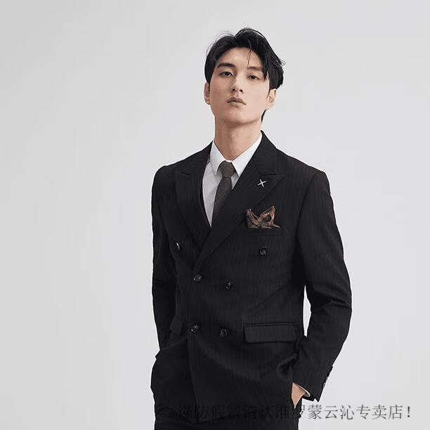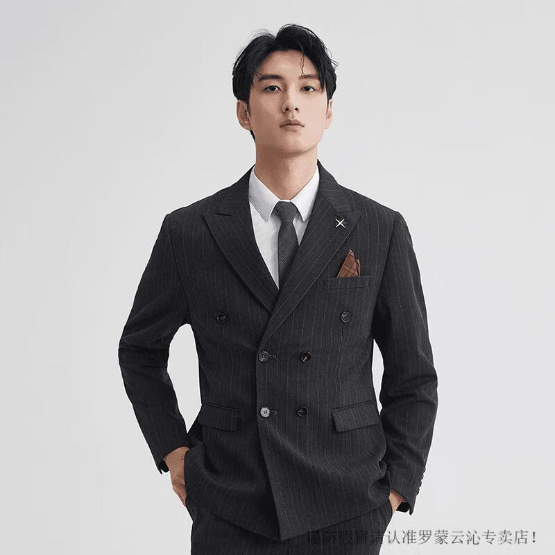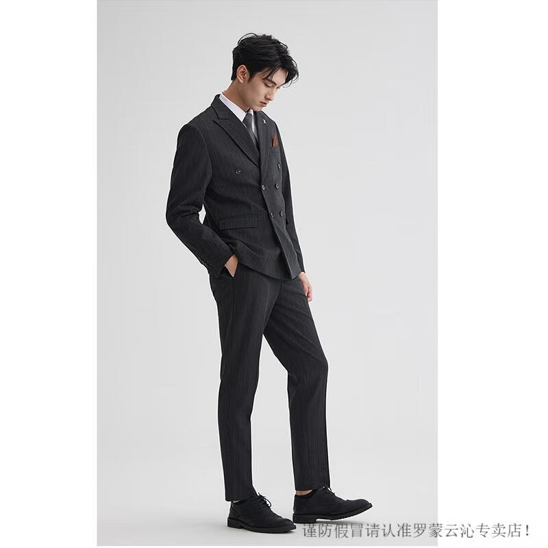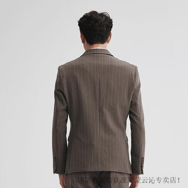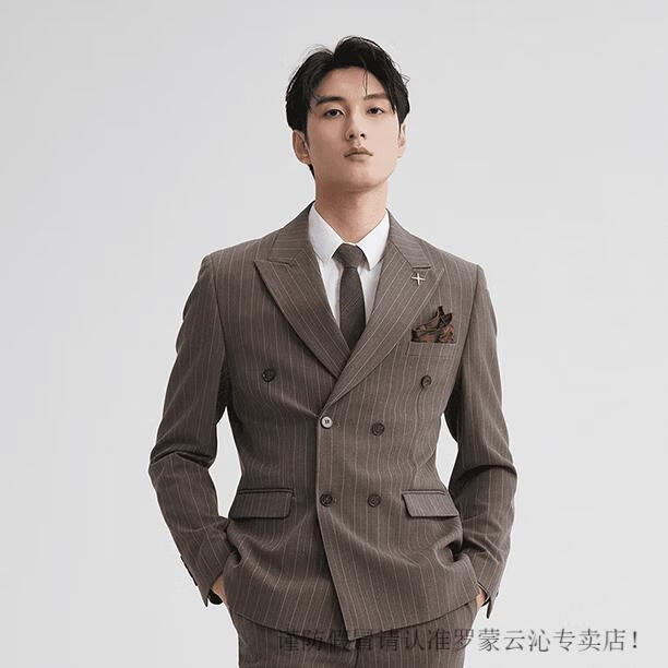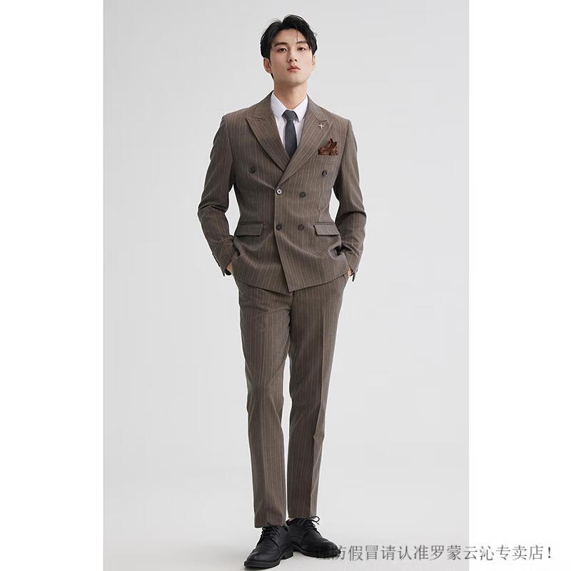 Romon double-breasted striped suit men's suit spring and autumn slim and handsome business formal groom's suit wedding brown single suit M 95-107Jin Jin equals 0.5 kg